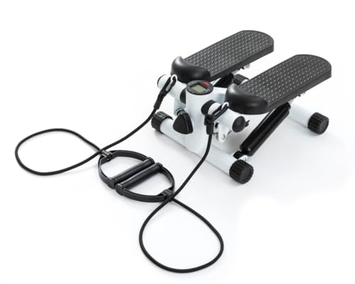 Pejevir 健康ステッパー 足踏み トレーニングバンド付き 踏み台の高さが調節可能 全身トレーニング 筋トレ 自宅で有酸素運動 室内 健康器具 コンパクト 男女兼用 運動用 ミニステッパー 自宅トレ フィットネス 日本語説明書付き(ブラック&ホワイト)