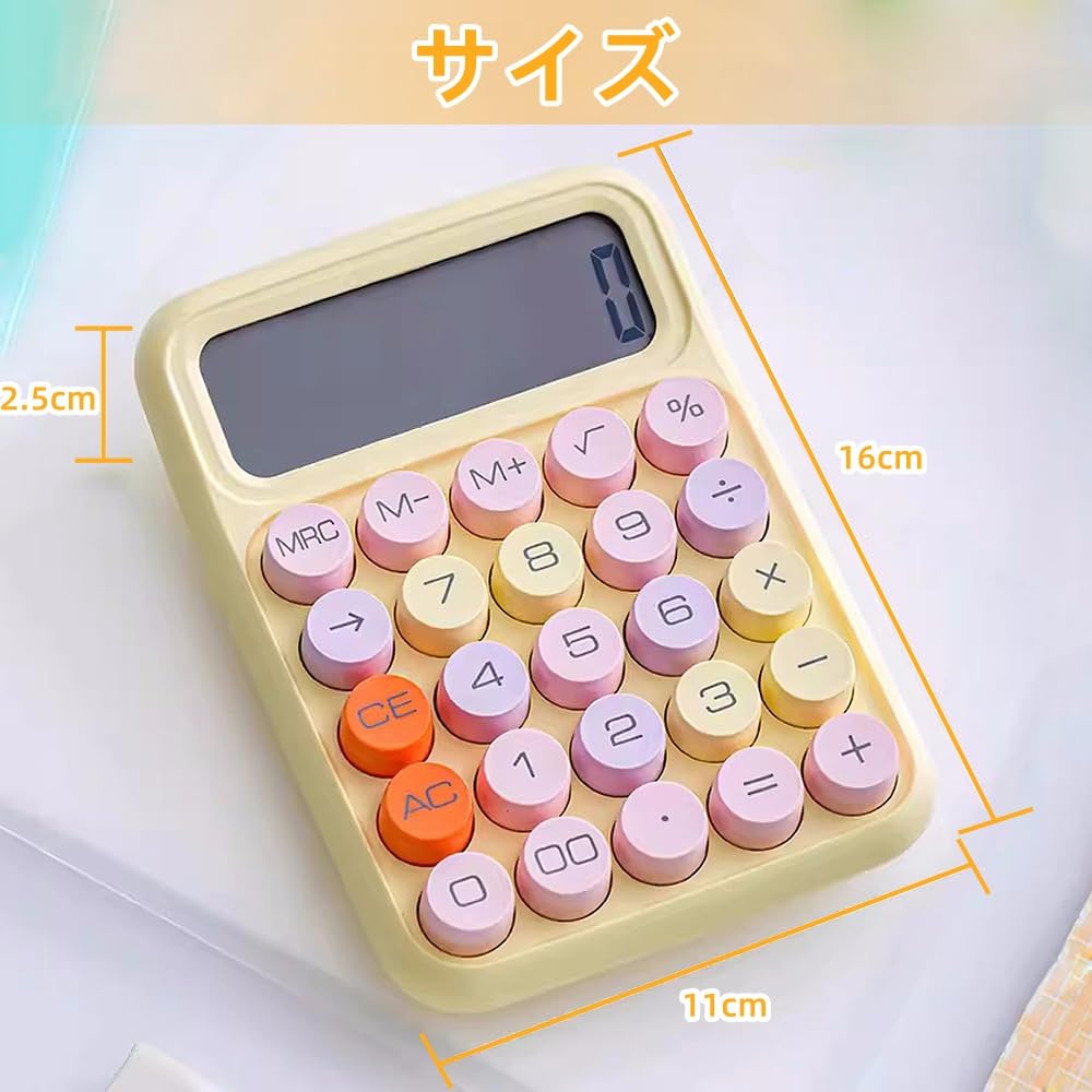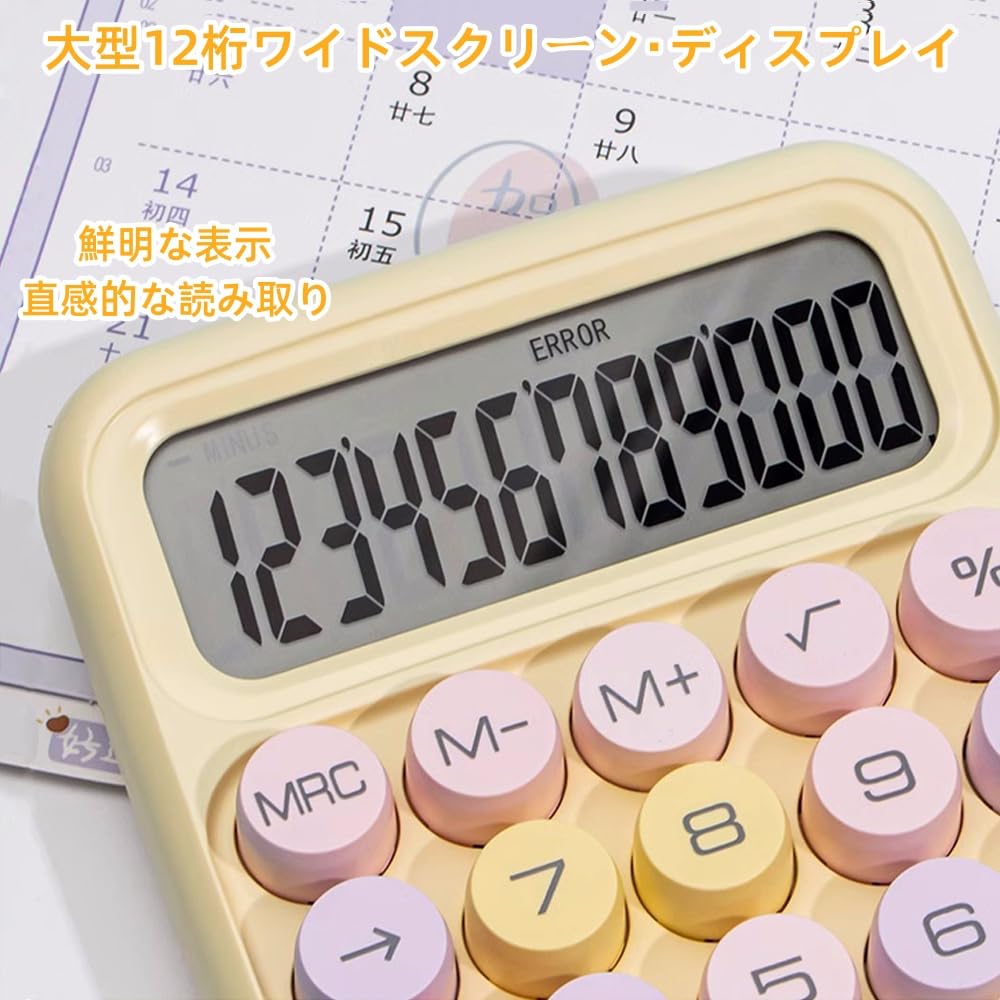 12桁 電卓 かわいい カラフル電卓 おしゃれ 計算機 長さ11 cm幅16 cm ミニ 滑り止め 丸ボタン 大型ディスプレイ 学生 文房具用品 軽量 携帯便利 押しやすい オフィス 家庭 学校用