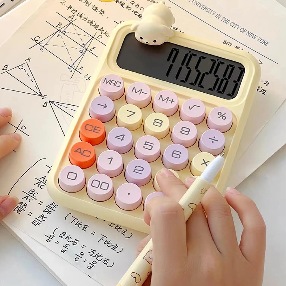 電卓 計算機 12桁 カラフル電卓 かわいい 大型LCDディスプレイ電卓 丸ボタン タイプライター風 持ち運び便利 ビジネス 商売 税計算 家庭 学校用 (レモンイエロー)