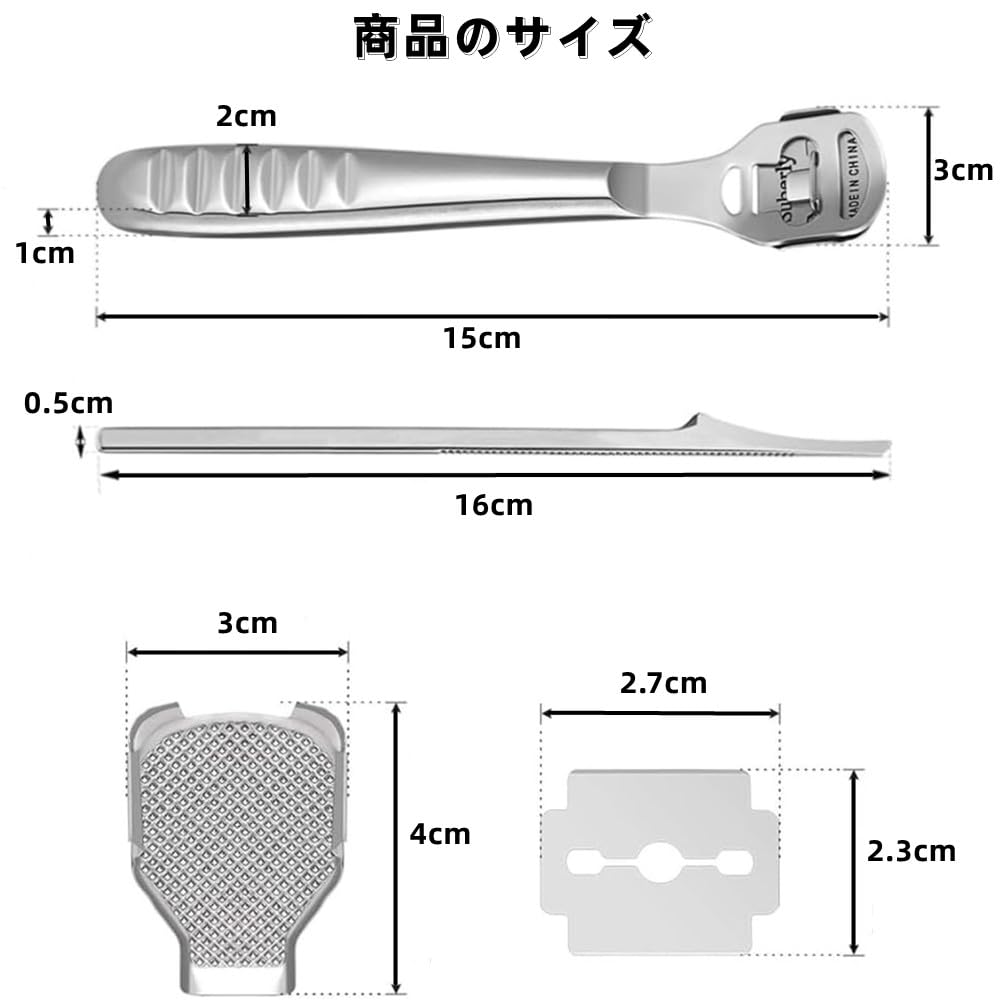 角質削り ペディキュアナイフ ステンレス製 角質を削除する 足底の汚れを取り除き フットケアツール 替刃10枚付き