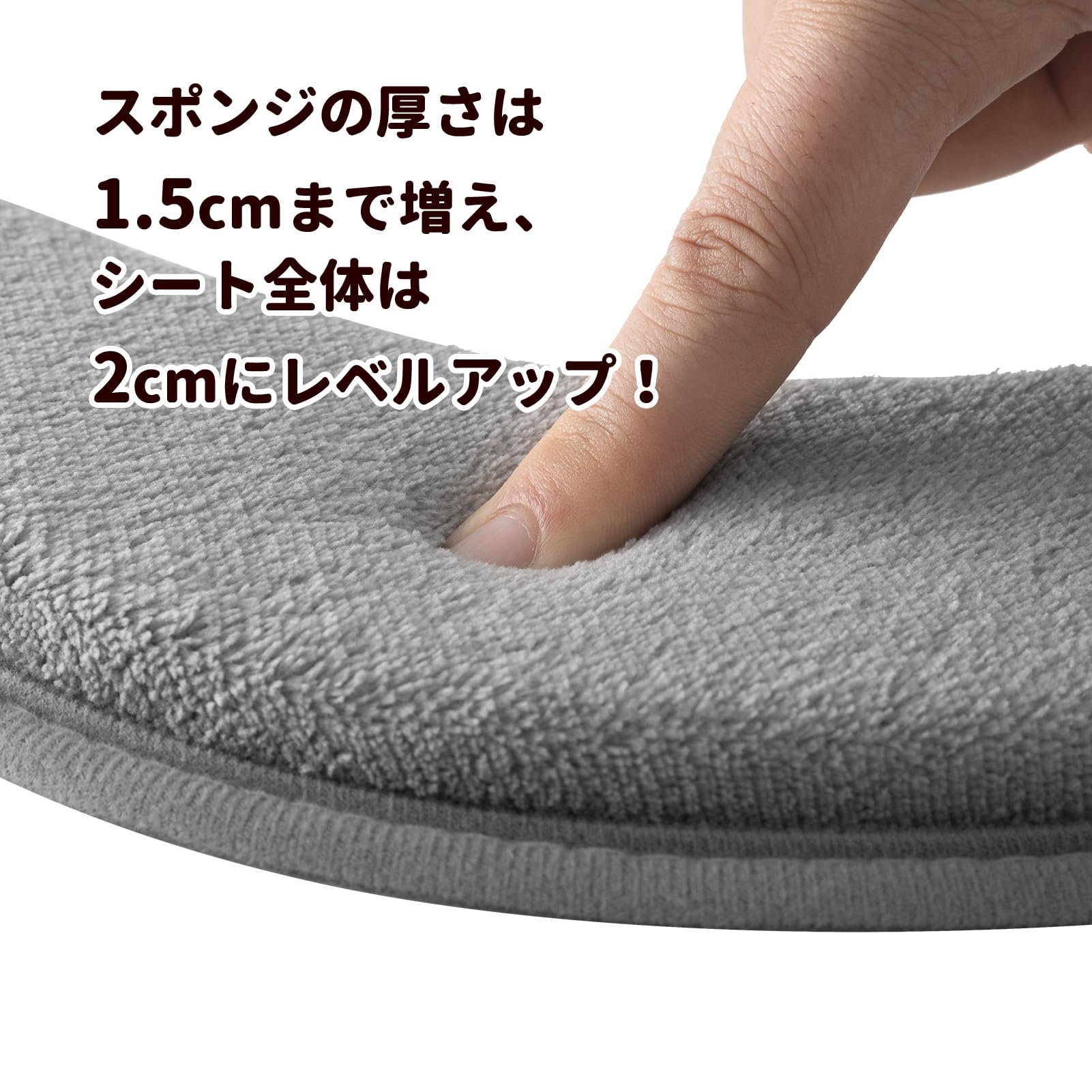 マシュマロのようなスポンジの厚さは1.5cmまで増え、シート全体は2㎝にレベルアップしました。