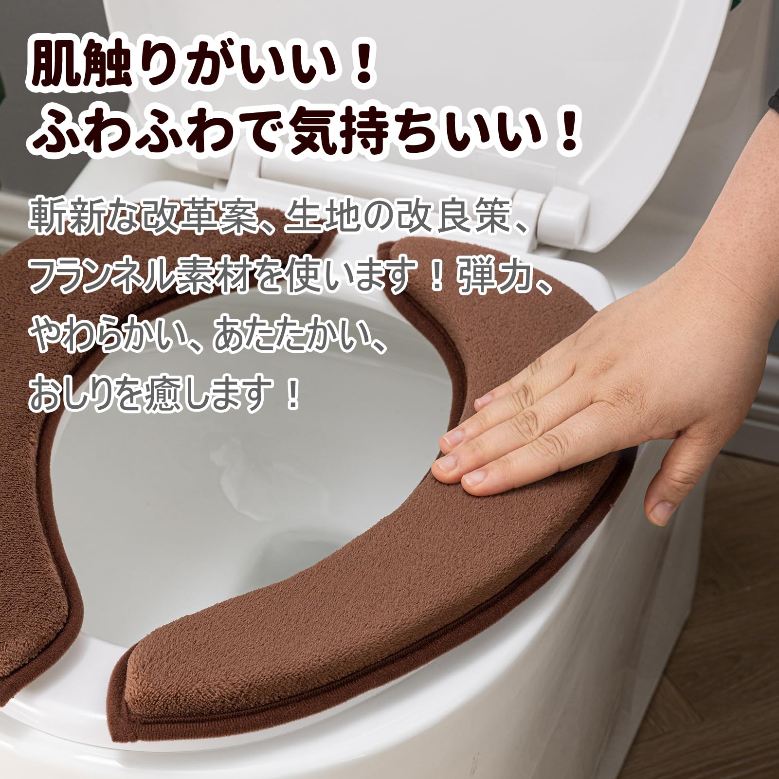 高品質のフランネル素材は人肌に優しい、触り心地は最高です、フカフカのフランネルで便座が冷たくならず、おしりが快適。