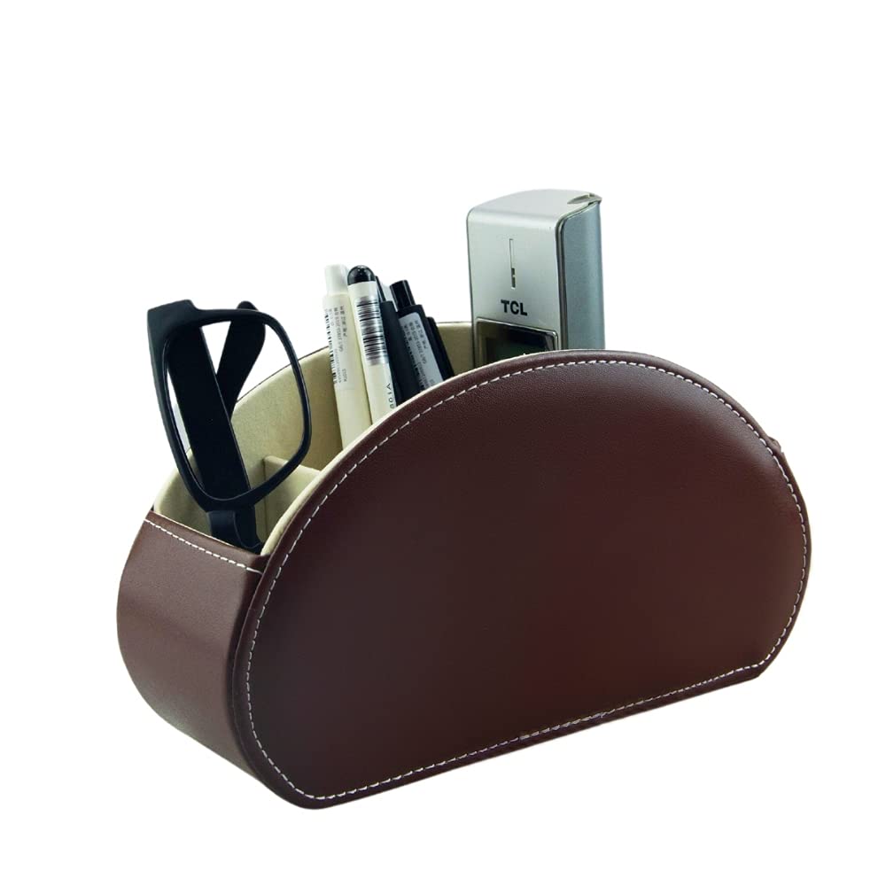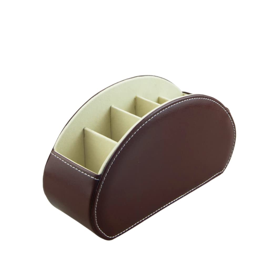 Awesomes リモコンラック PUレザーリモコンホルダー 卓上リモコン収納ボックス 卓上小物収納ケース PUオシャレ収納ボックス (ダークブラウン)
