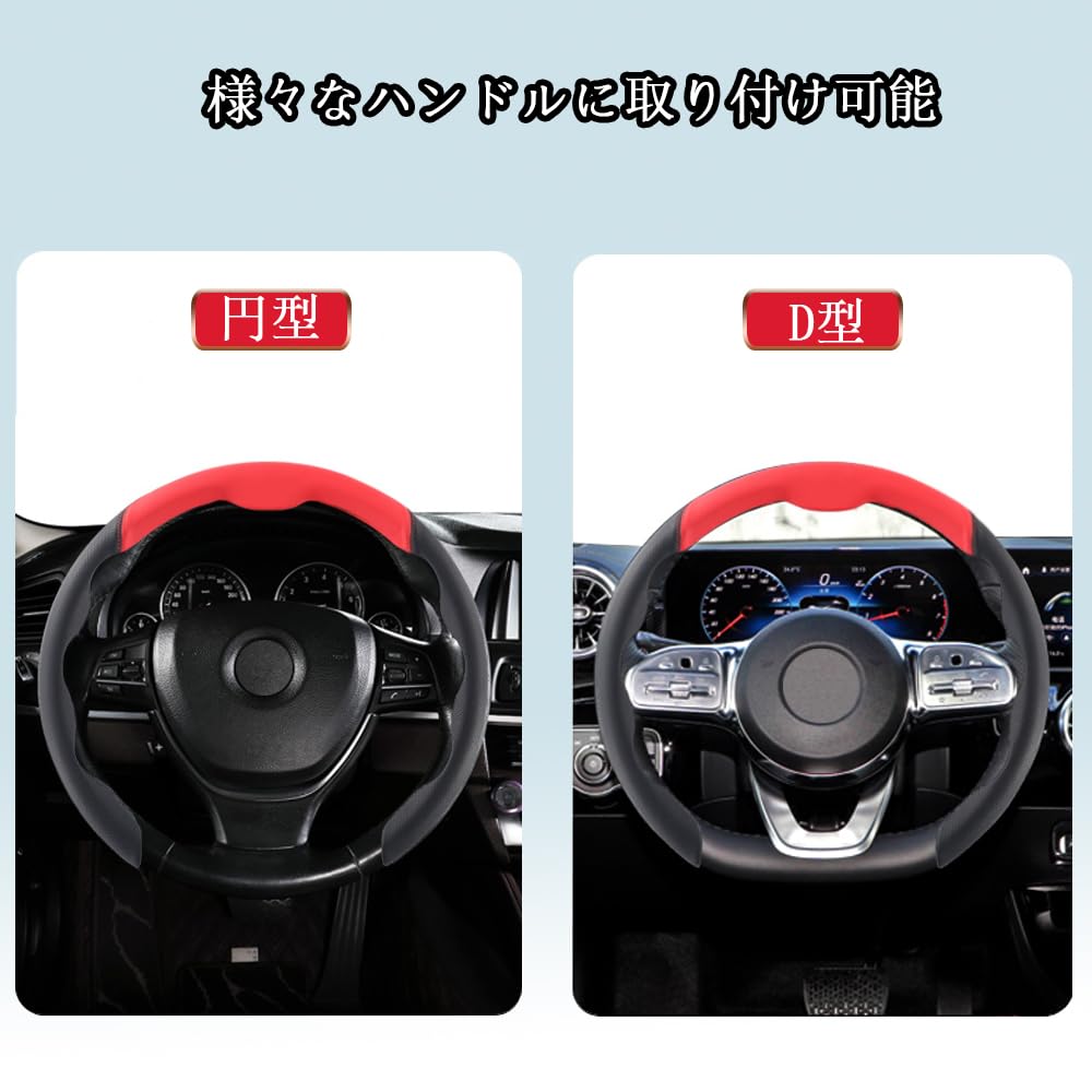 軽自動車 ステアリングカバー ハンドルカバー マイクロファイバー革ハンドルカバー 外径約38cm オシャレ グリップ滑り止め グリップ感が心地よい 車種共通 円形 毛皮と革素材をめくる (レザーレッド)