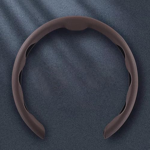 EIING ハンドルカバー 車用 軽自動車 sサイズ 3Dエンボスパターン 滑り止め ステアリングカバー 本革 汎用 おしゃれ 通気性がよい 取付簡単 普通車 ハンドル 保護カバー 高級 内装パーツ 車用品 アクセサリー オールシーズン対応 円形 37~38CM (ホワイト+ブラウン)