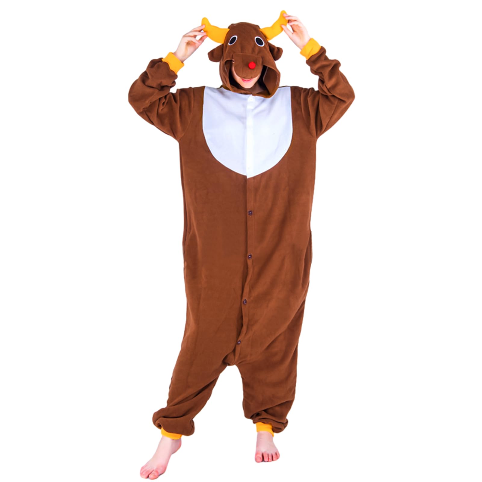 [Moerstar] トナカイ 着ぐるみ クリスマス コスチューム コスプレ衣装 フリース 大きいサイズ ゆったり 着ぐるみ メンズ レディース 男女共用 オールインワン クリスマスパーティー 変装 ホームウェア 寝間着 超可愛い 柔らか 動物 トナカイ 大人用