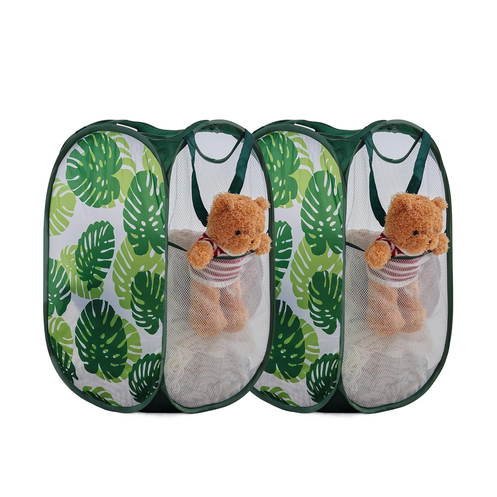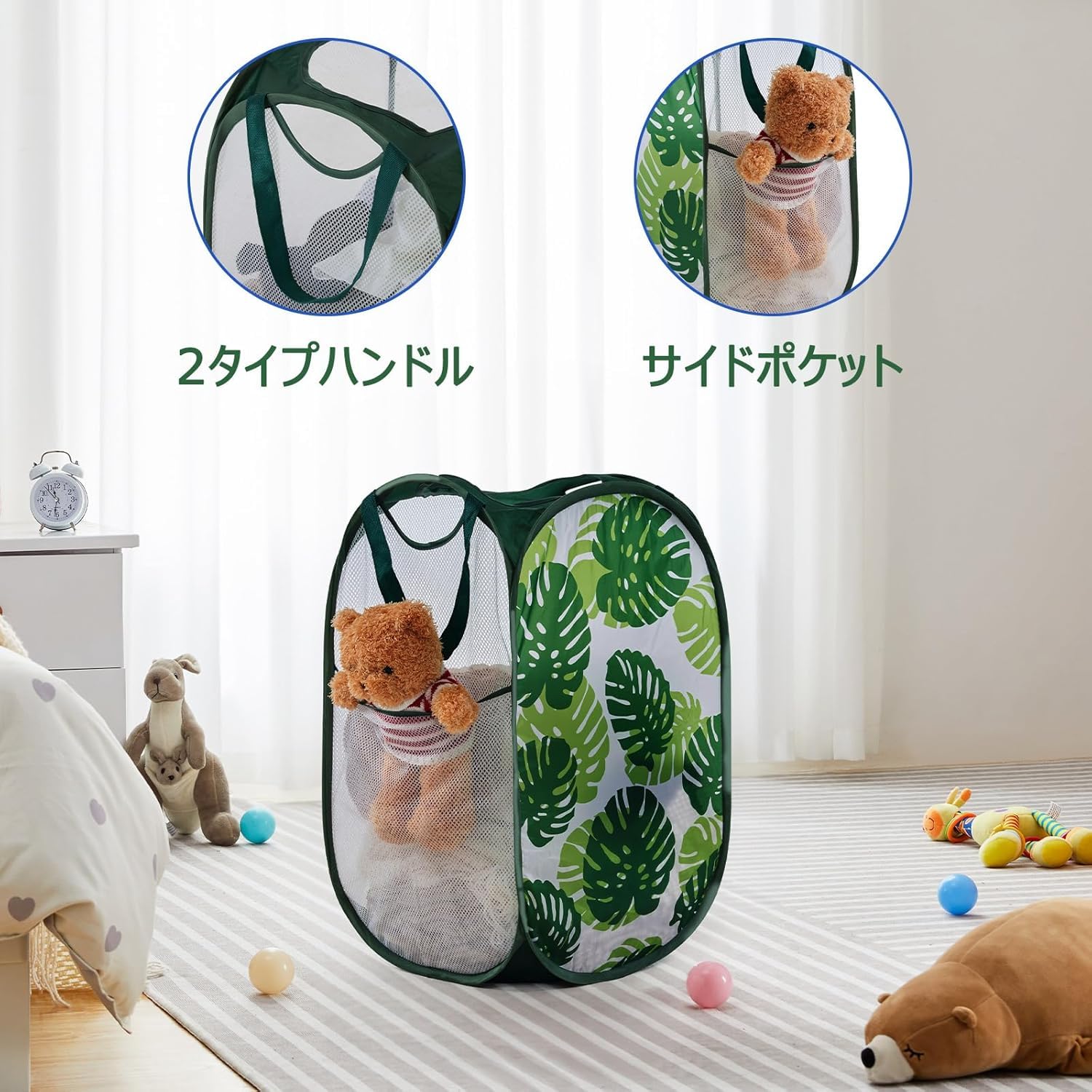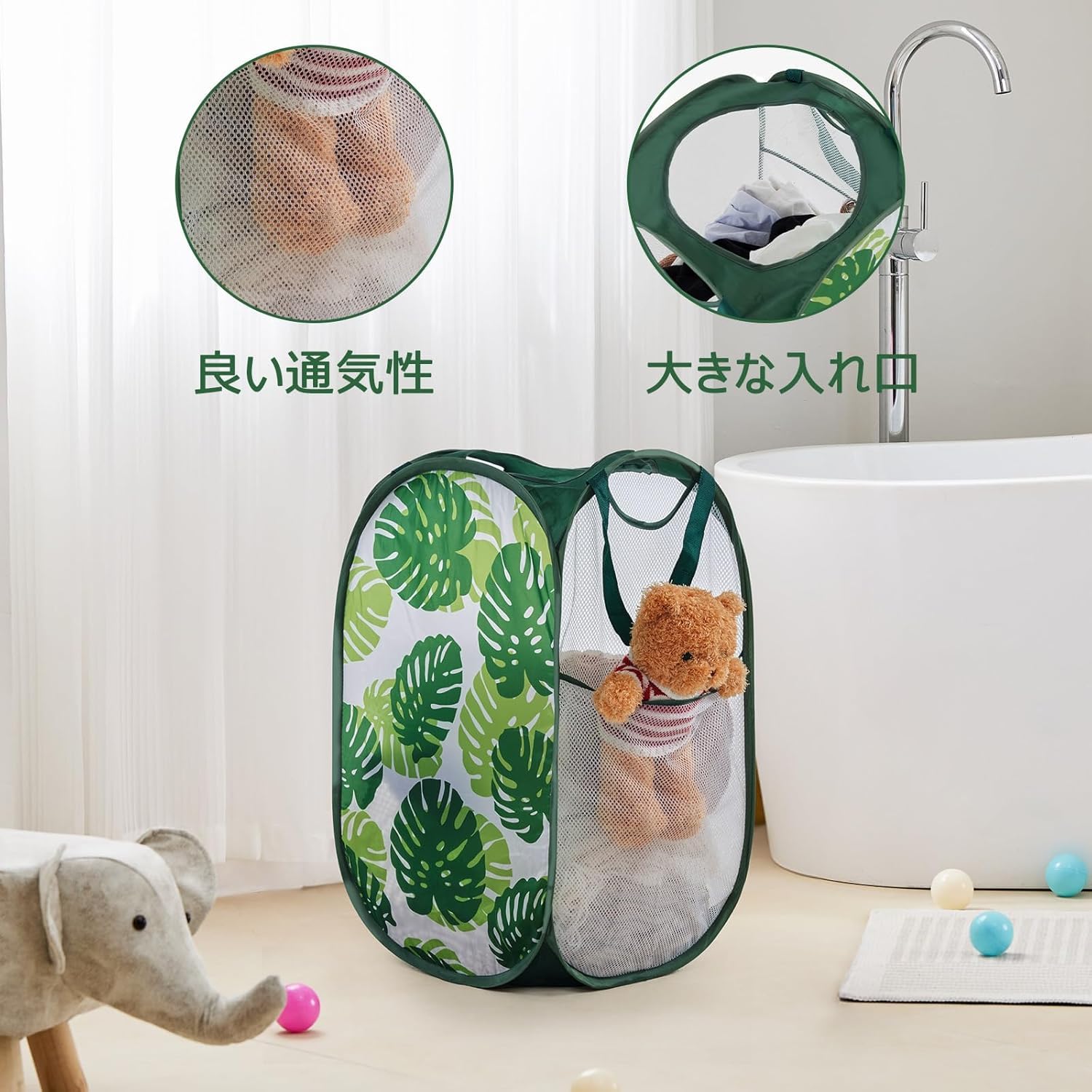 TECHMILLY ランドリーバスケット 折りたたみ 洗濯カゴ 大容量 71L メッシュ 省スペース 取っ手付き ランドリーバッグ 収納 洗濯物 袋 かご 持ち運び可能 軽量 旅行 ゴミ箱 (グリーンリーフ、2PCS)