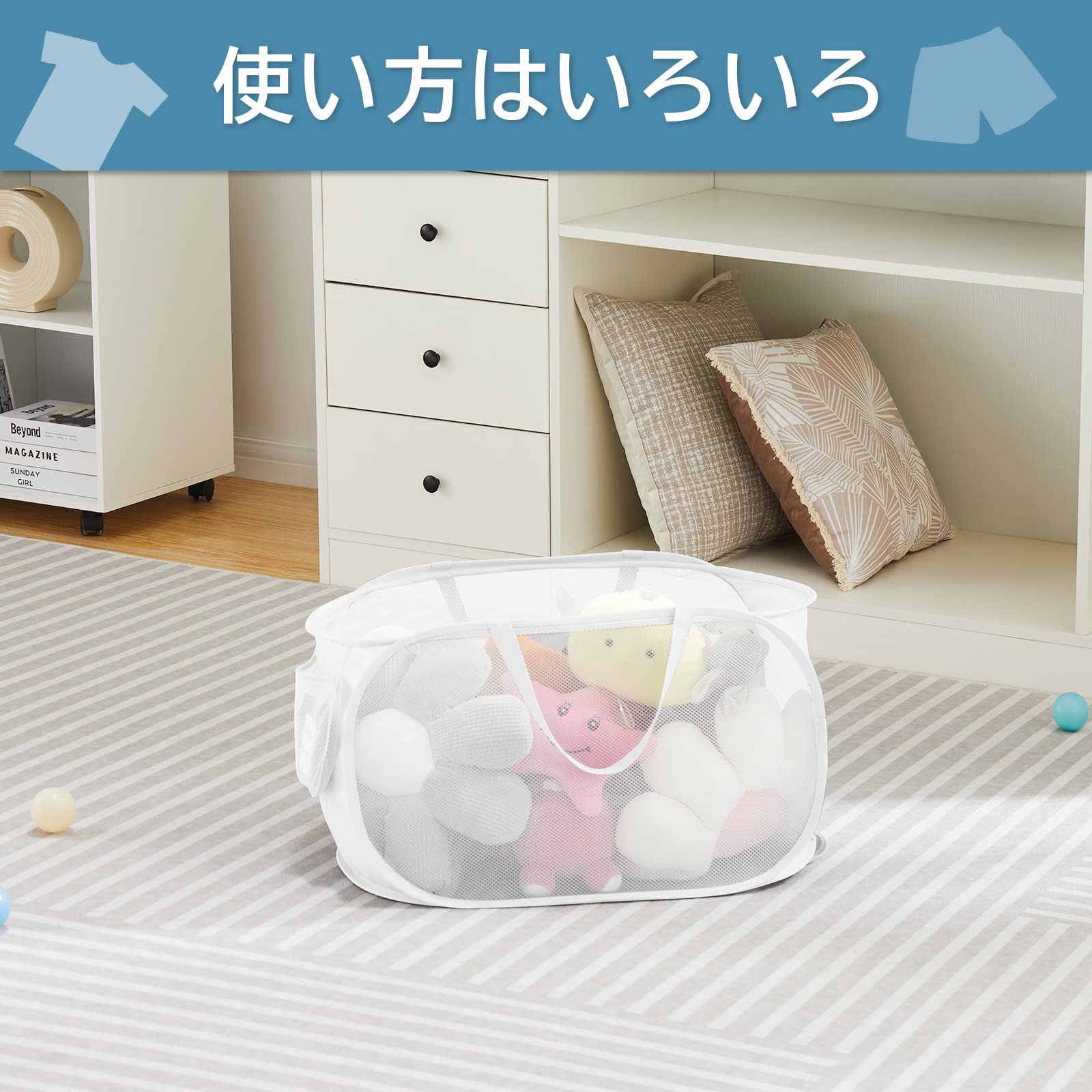 TECHMILLY ランドリーバスケット 横型 洗濯カゴ 折りたたみ 大容量 メッシュ 収納 洗濯物 袋 かご 持ち運び可能 軽量 旅行 ゴミ箱 長さ64CM幅さ35CM高さ35CM (ホワイト、2PCS)