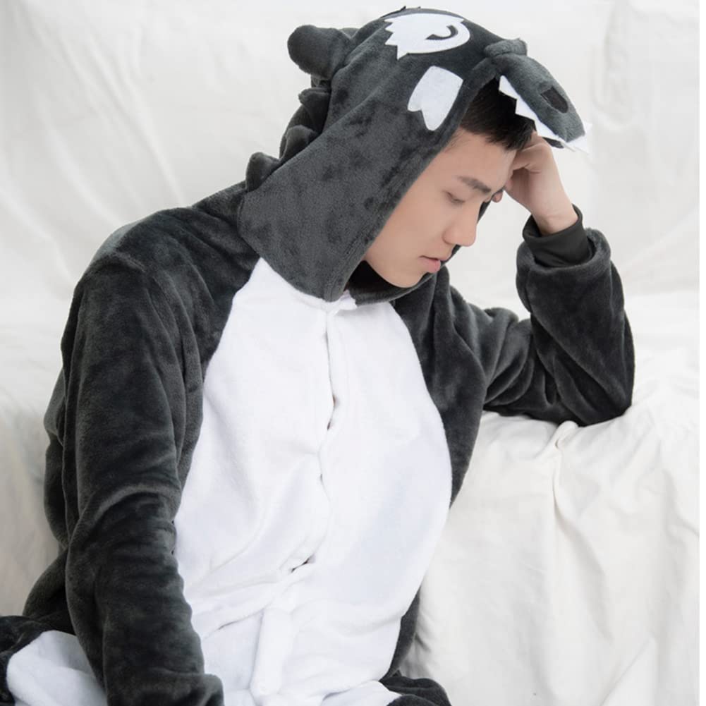 オオカミ 着ぐるみはルームウェアとしてもお役立ち。フリース素材であたたかいので、寒い時期はお部屋での防寒着としても便利に。両サイドポケットつきなので、スマホなどの小物も便利に持ち歩けます。