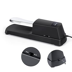 Donner DK-1サステインペダルは、極性切替スイッチを装備しているため、ほとんどの電子キーボードのサスティン・ジャックに接続して、本来の操作どおりご利用いただけるものです。また、スイッチは金属接点を使用しているため、広範囲の電子楽器のスイッチ端子の電圧仕様でお使いいただけます。