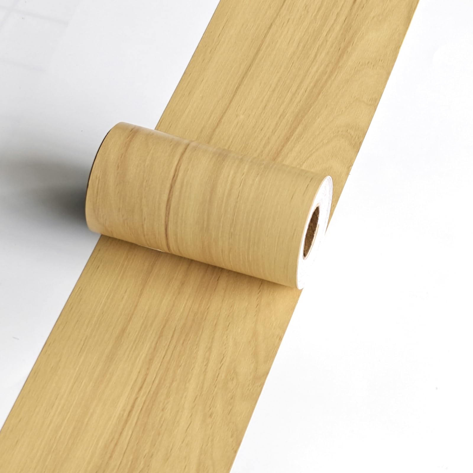 Anloma マスキングテープ 木目 幅10cm x 長さ5m ライトイエローオーク木目 厚手 リメイクシート 窓枠用リメイクシート 木目テープ 壁紙シール 強い粘着 剥がせる 補修 防水防汚 木口 巾木 窓枠用 DIY模様替え (道具付き)