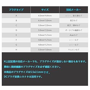 *上記記載の対応メーカーでも、プラザサイズが適合しない場合もあります。事前に接機器のプラザサイズをず確認ください。本商品のプラザサイズは5.5x2.1mmです。DCプラグ交換コネクタは別売です。