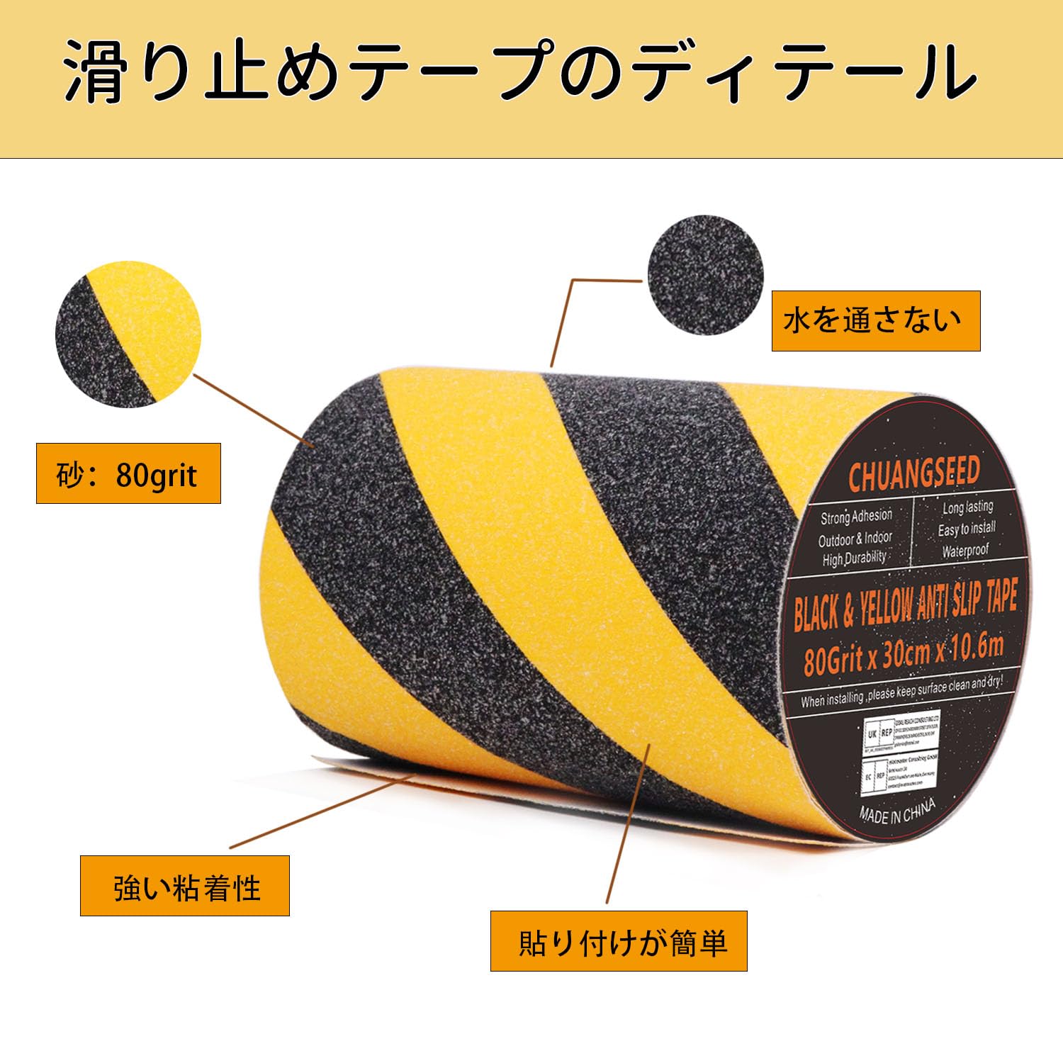 CHUANGSEED黒と黄色の滑り止めテープ1ロール30cmx 10.6mは、家族のスーパーマーケットのキッチンや公共の場所での滑り止めの使用に適しています