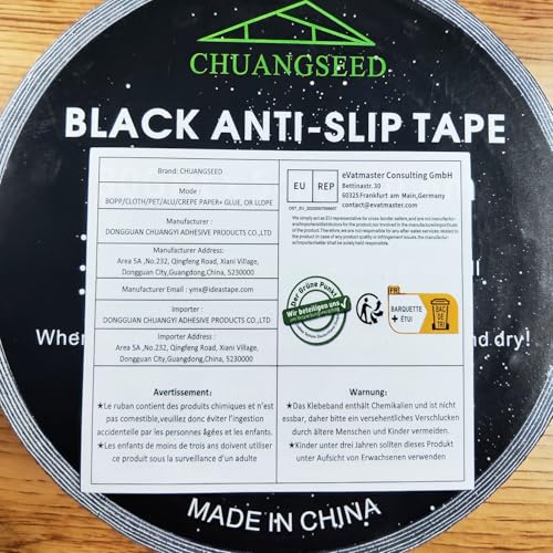 CHUANGSEEDブラック滑り止めテープ1ロール 5cmx 10.6m は、家族のスーパーマーケットのキッチンの公共の場所での滑り止めの使用に適しています 注:粘着面が頻繁に拭く必要がある部分の場合は適宜使用してください、貼り付けた後に清掃が必要な場合は、摩擦が多いため、手の皮膚を保護するために手袋を着用するのが最善です。