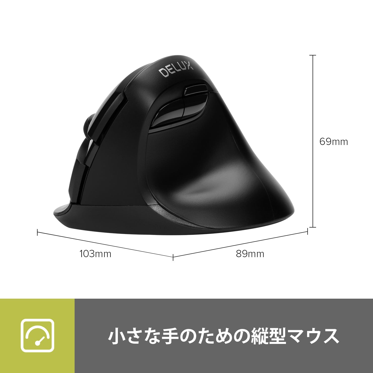 DELUX エルゴノミクスマウス 無線 静音 小手用 縦型マウス 4000DPI 2.4G/Bluetooth 5.0デュアルモード 手根管、手首、手の疲れに、ラップトップ/PC/Mac用 (M618MINI DB-ブラック)