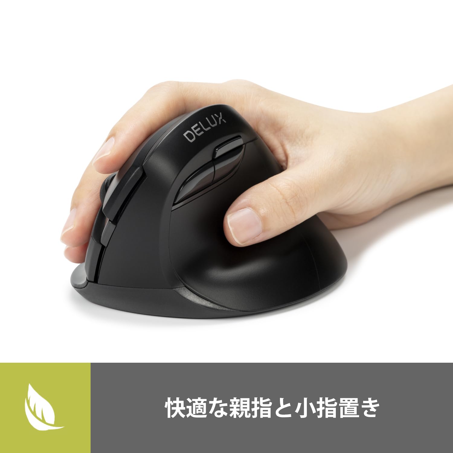 DELUX エルゴノミクスマウス 無線 小手用 84g軽量 縦型マウス 4000DPI 2.4G/Bluetooth 5.2デュアルモード 充電式 手根管、手首、Windows、MacOS、ラップトップ用(M618Air -ブラック)