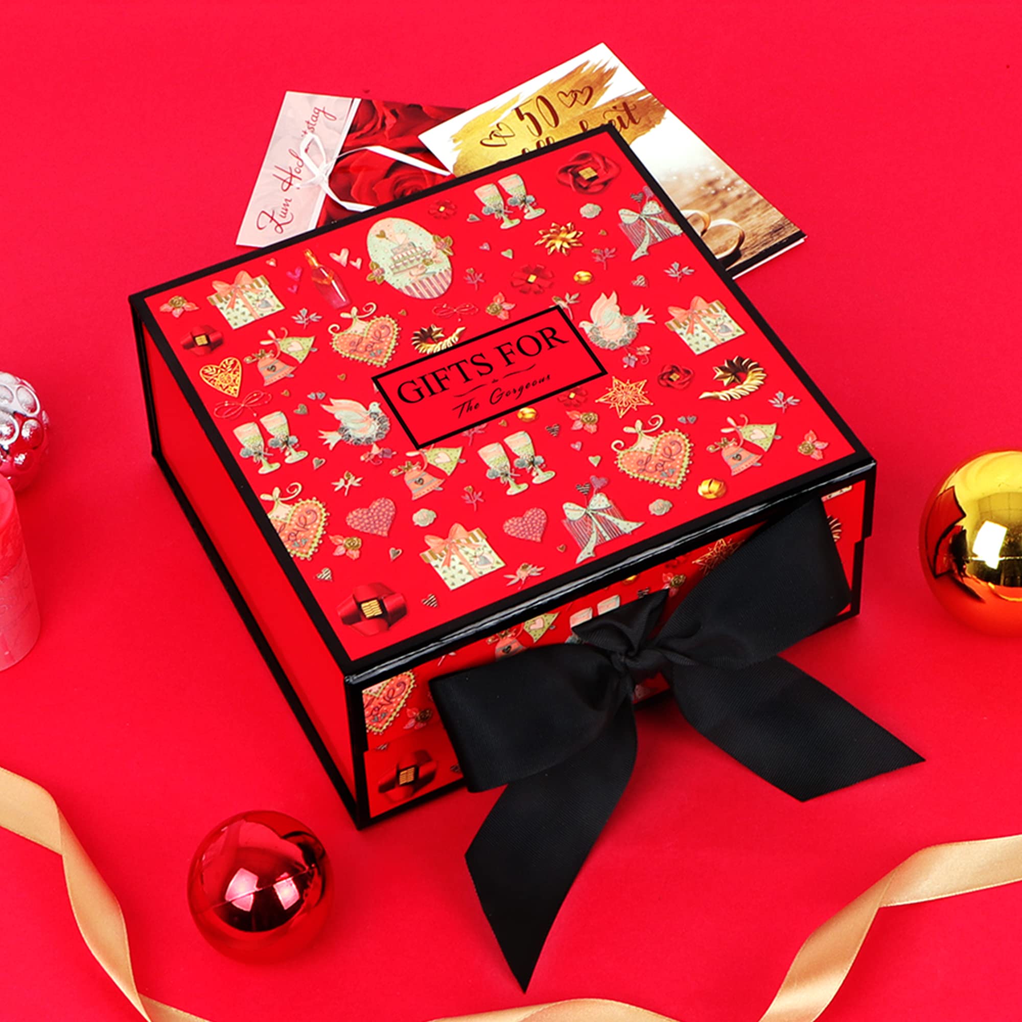 JiaWei ギフトボックス 24 x 24 x 9.5cm, プレゼントぼっくす 箱リボン付き, 高級 ギフトボックス, プレゼントボックス, ふた付きマグネットプレゼントぼっくす, 結婚式, 花嫁介添人, パーティー、誕生日クリスマス箱、お祭り, シンプルなハイエンドラッピング 箱