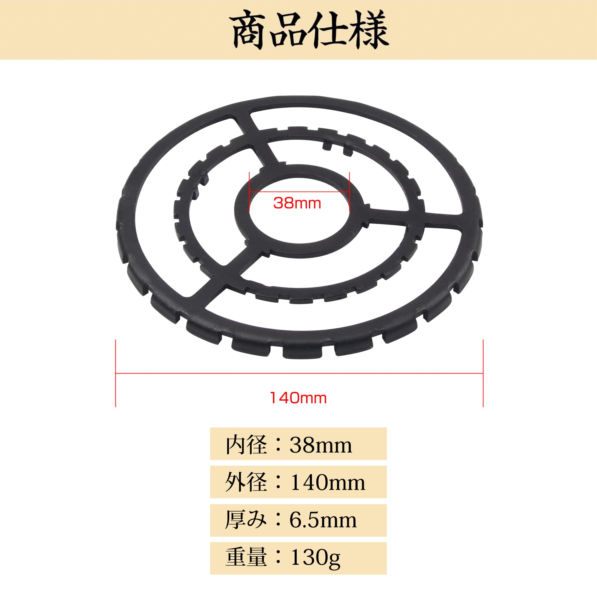 包装内容;ミニ五徳、遮熱板(2件)。五徳:直径14cm 厚み:0.65mm 重量:130g 材質:鉄,表面に防錆油仕上げの為新品には油が付着しております。中性洗剤で一度洗えば落とせますので、ご注意くださいませ。五徳特許出願済み