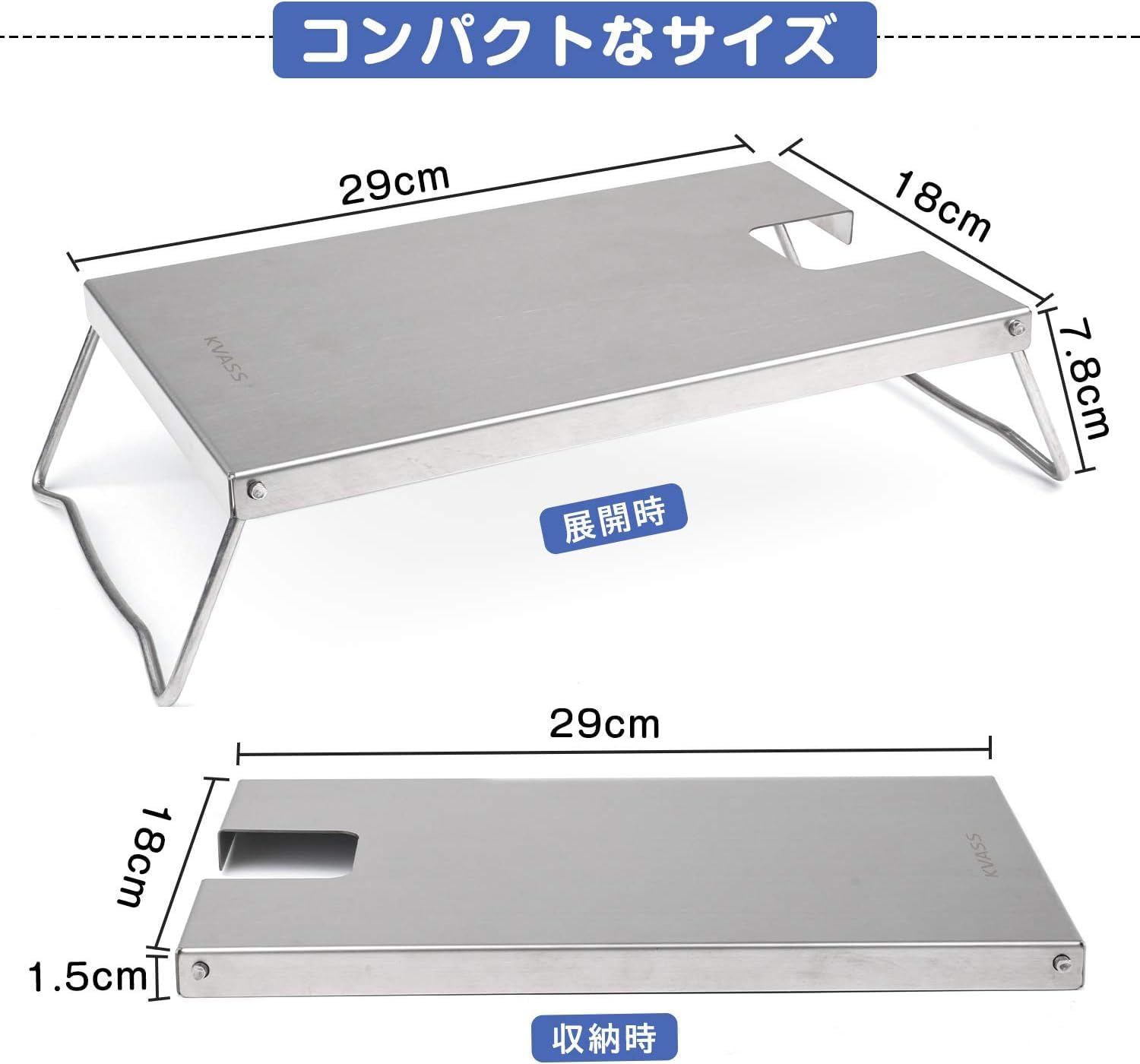 ソロキャンプにちょうどいい大きさ、リュックに入れてもスペースを取らない、すごく軽くて便利です。折りたたみ式の両脚は開け閉め自由に調整でき、使わない時は閉めて収納できます。そして、テーブルの脚は曲面にして4箇所の支点があり、砂利などのサイトでも安定してお使えいただきます。キャンプやバーベキューなど様々なシーンで愛用されます。