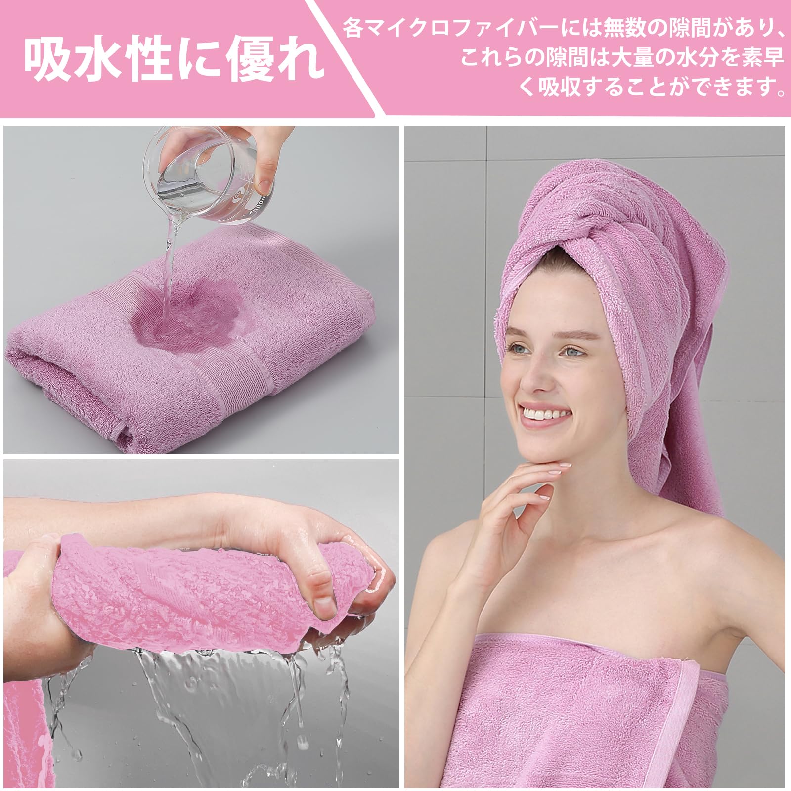 ラップタオル プールタオル 140X80cm 大判 柔らかい 吸水 無地 男女兼用 巻きタオル お風呂上がり スイミング プール ジム 温泉 海水浴 着るバスタオル (ピンク)