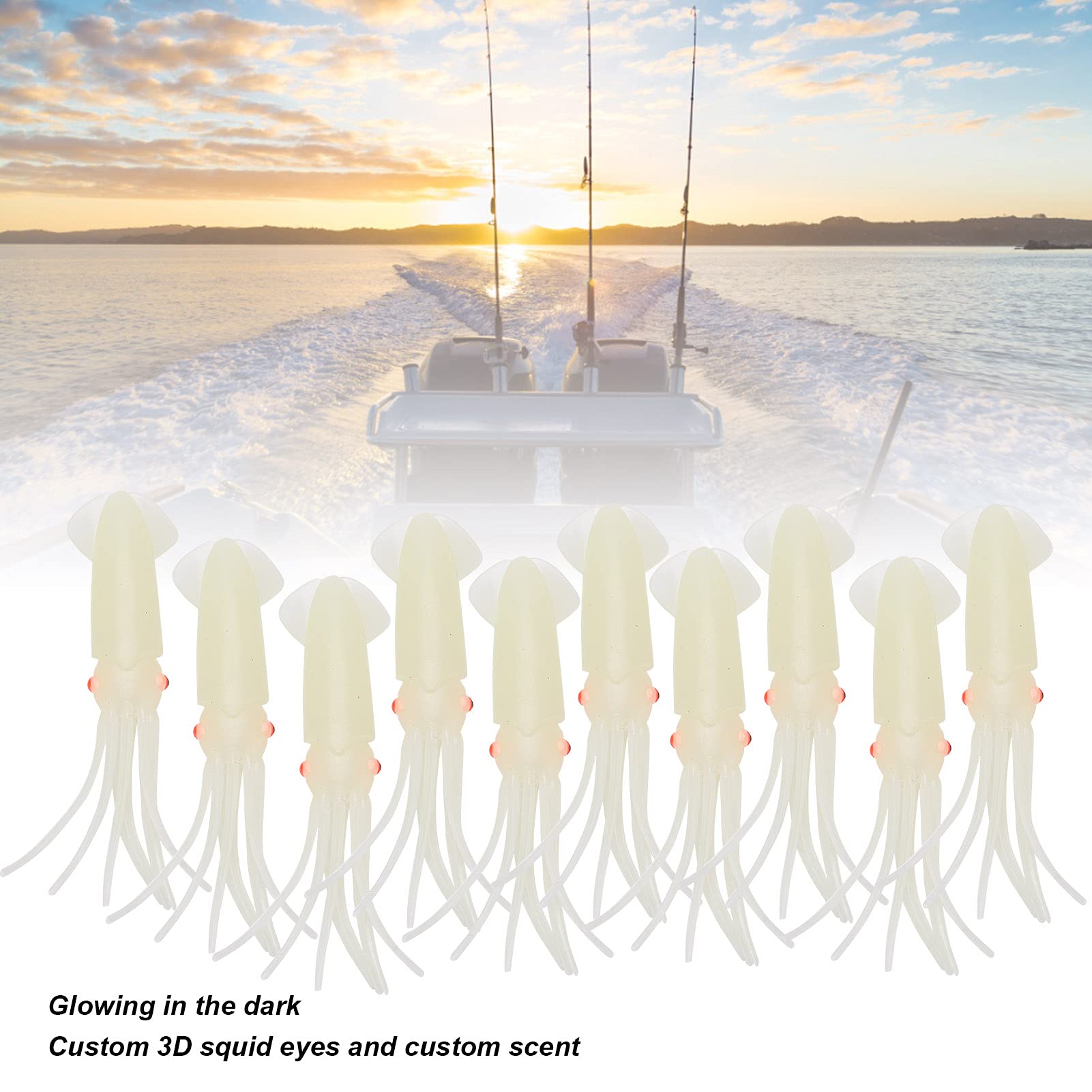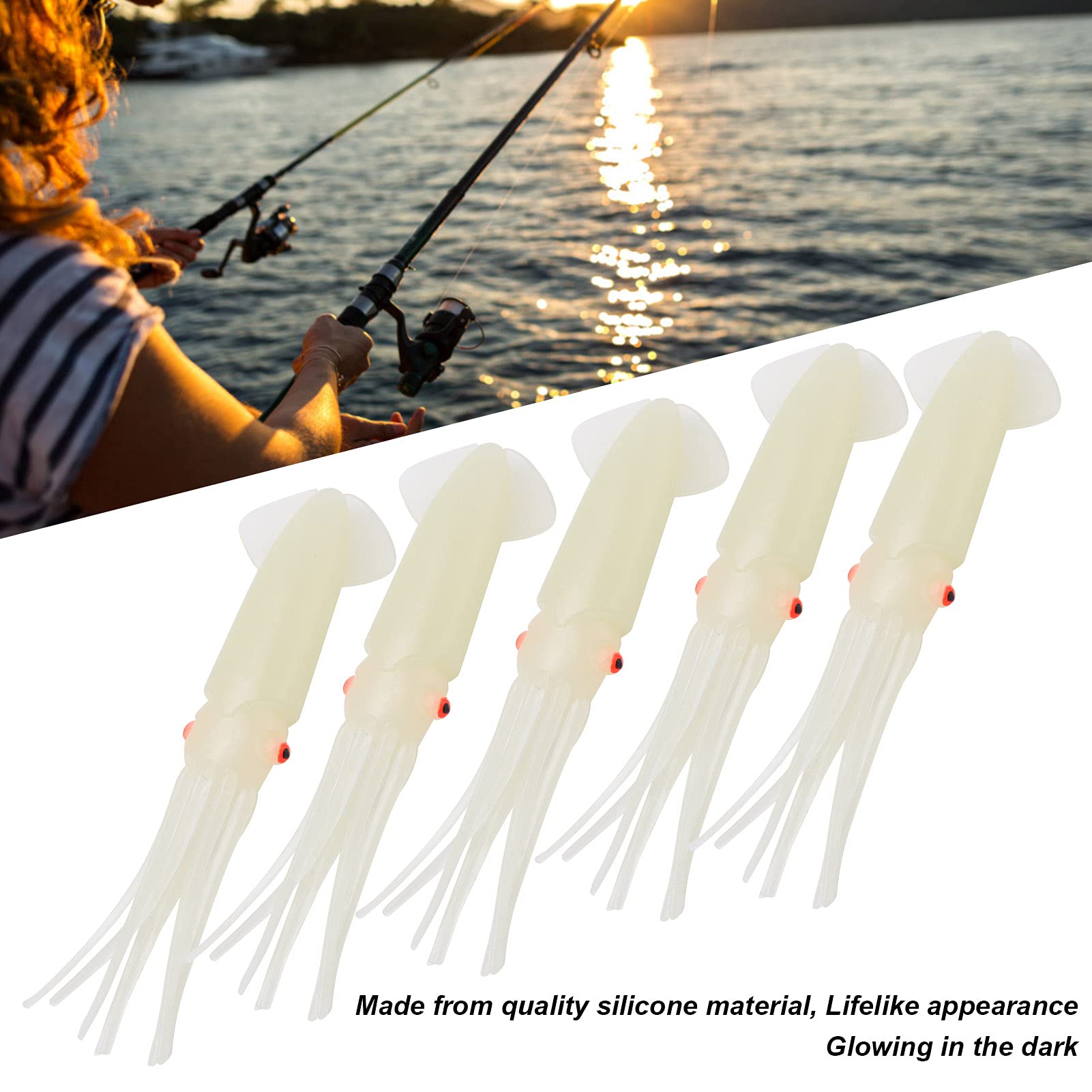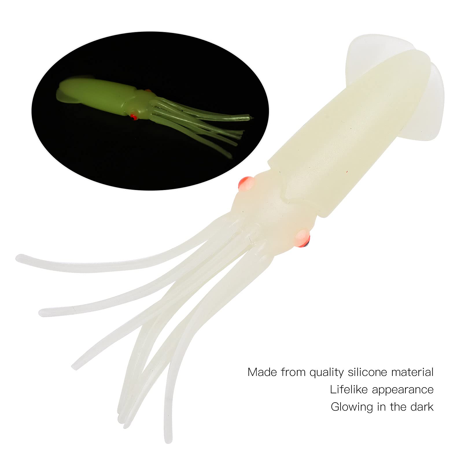 特徴:1. これらのイカ釣りルアーは高品質のシリコン素材で作られており、耐久性があり、長寿命です。2. まるで本物のイカが水中で泳いでいるようなリアルな外観と、鮮やかな泳ぎは魚たちの注目を集めます。3. 暗闇で光るので、魚を簡単に観察して引き寄せることができ、暗い環境でも優れたパフォーマンスを発揮します。4. カスタム 3D イカの目とカスタムの香りで、あらゆる動きに合わせてヒラヒラと収縮する触手。5.釣り人にとって素晴らしい釣りルアーであり、釣りが好きな人への理想的な贈り物でもあり、より便利になります。仕様:アイテムタイプ: イカ釣りルアー材質: シリコーンパッケージリスト:10×イカ釣りルアー