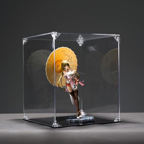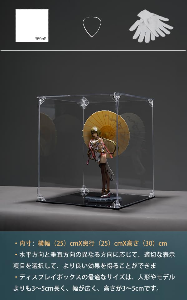 YFYUNDUDU 八番屋 フィギュアケース アクリル フィギュア収納 マグネット式 UVカットおもちゃの収納ボックス 高い透明度 収納ボックス 組み立て式 防汚れ手袋-クリーニングクロス付き フィギュアや小物の保護に最適 大切なコレクションを美しく飾る (幅25 × 奥行25 × 高さ30 cm 台座: 黒)