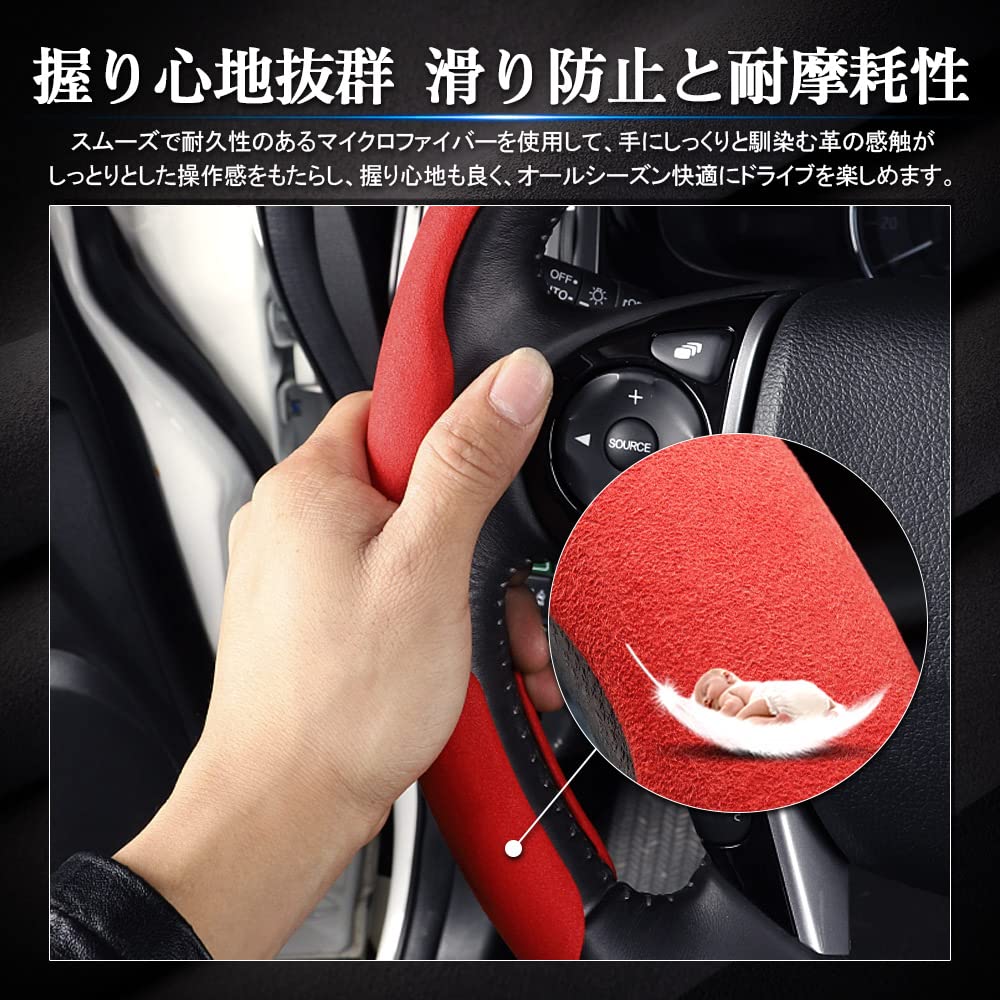 Cartist ハンドルカバー 車用 ステアリングカバー 汎用 普通車 おしゃれ 汚れ防止 滑り防止 オールシーズン対応 ハンドル 保護カバー カスタム 内装パーツ アクセサリー 2ピースセット 取付簡単 メーカー直営 (レッド)