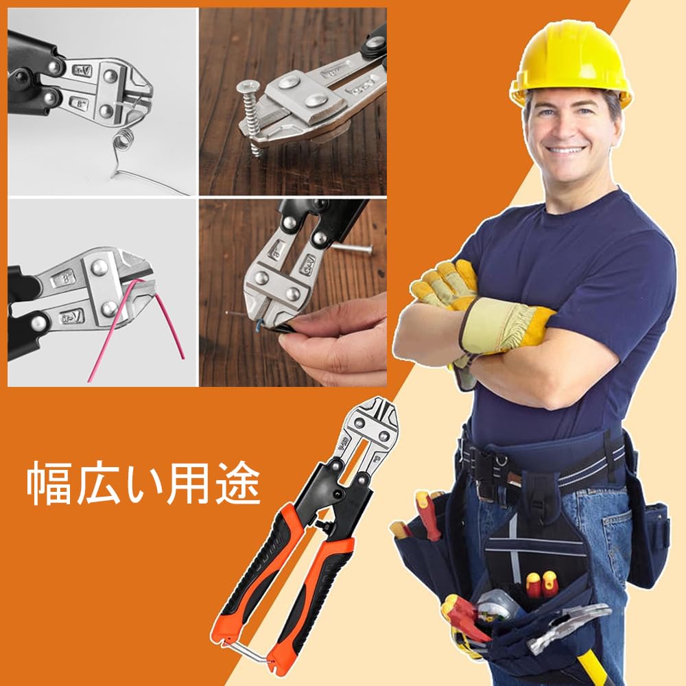 ボルトカッター 工具, 両手対応 ロック機能付き チェーン・ワイヤー切断用 オレンジ/ブラック