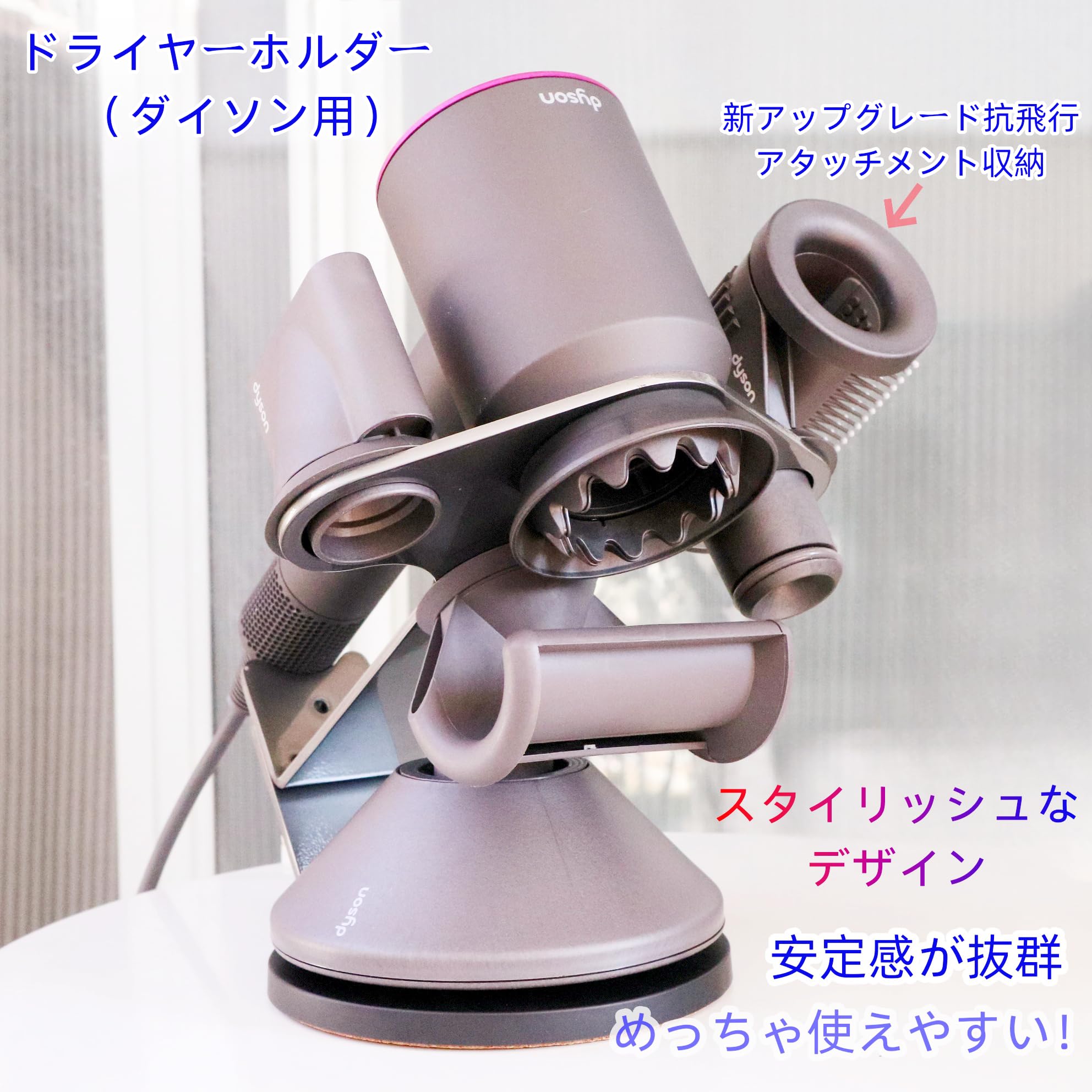 スタイリッシュな6イン1のデザインデザインにマイナスイオンとインテリジェントヒートコントロールという高い機能性を備えたダイソンのヘアドライヤーを愛用している方におすすめの、スタイリッシュなドライヤースタンドです。