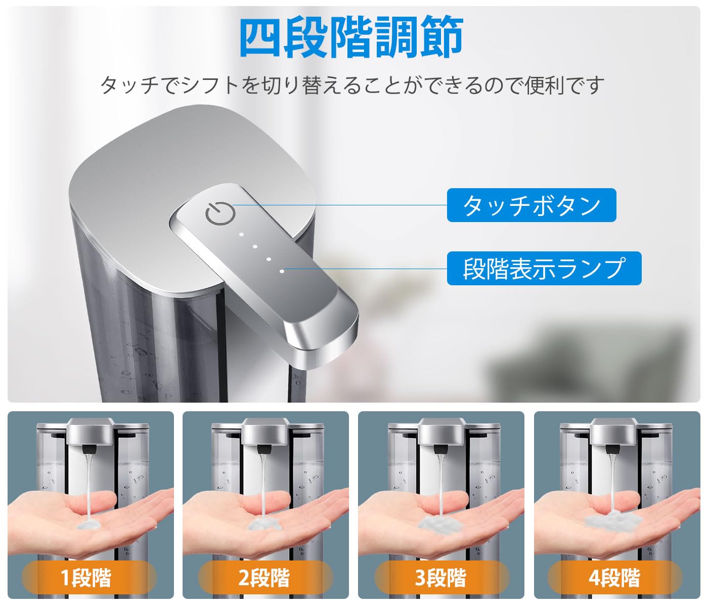 ソープディスペンサー 自動 泡 吐出量4段階調【2024最新ディスプレイ】ハンドソープディスペンサー 400ml 洗いへの20sカウントダウンタイマー 泡タイプ オートセンサー ノータッチ 非接触式アンチウイルス 壁掛け 卓上 オートディスペンサー TYPE-C充電式 IPX5防水 食器洗剤 洗浄モード機能 ディスペンサー ウイルス対策 透明ボトル 手洗い/家庭/洗面所/キッチン/病院などに適用