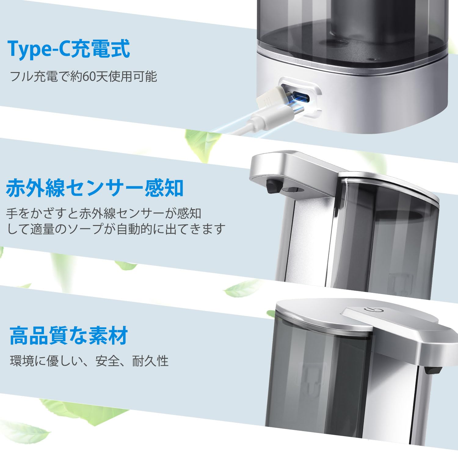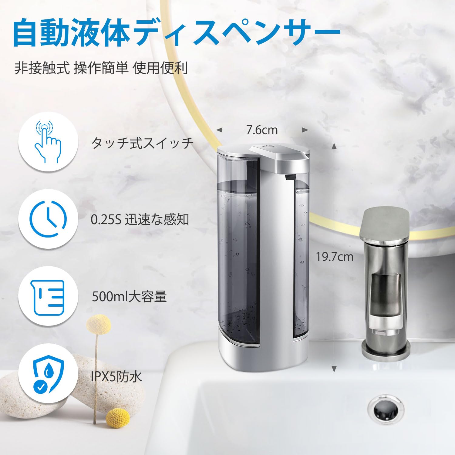 LAOPAO ソープディスペンサー 自動 液体 2段階 手洗い オートディスペンサー 充電式 ハンドソープディスペンサー 食器洗剤 ハンドソープ 台面 トイレ キチン シルバー X20 plastic silver liquid [並行輸入品]