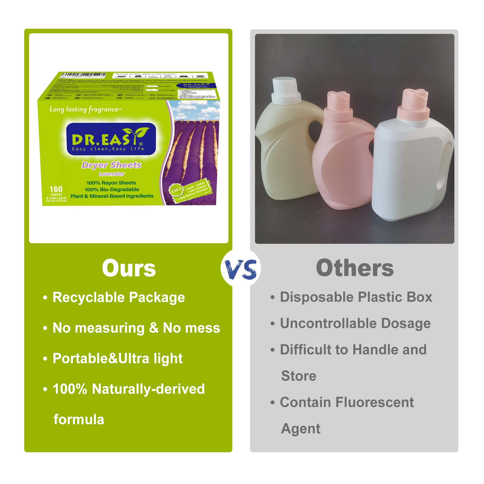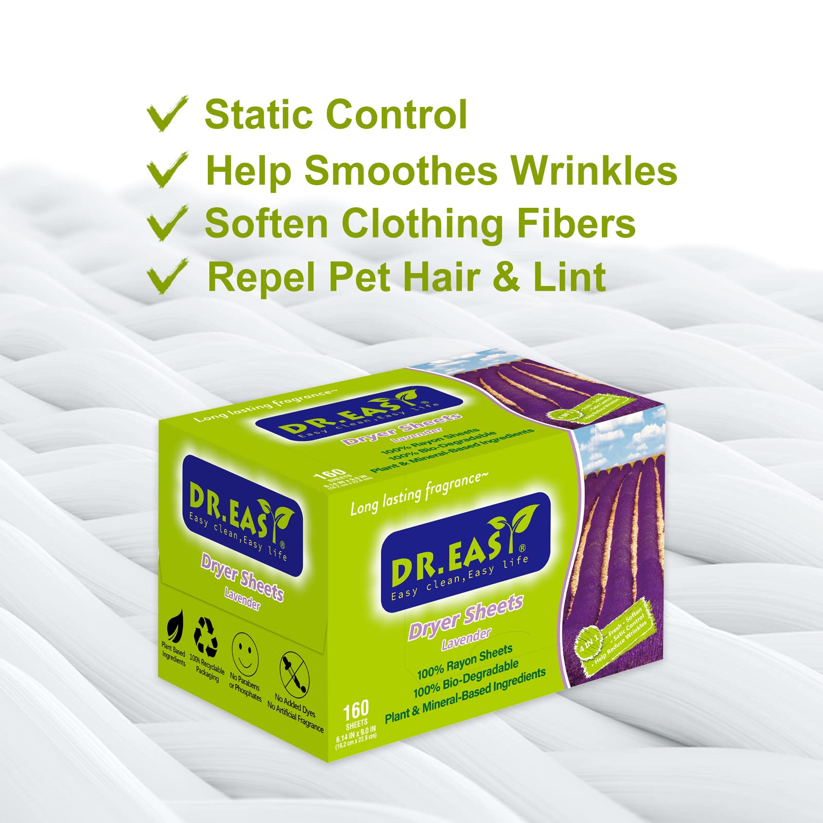 DR.EASY乾燥機用柔軟剤シート 植物由来成分 252枚入り ラベンダー エッセンシャルオイル 香りのある 人工香料不使用 無染料 静電気防止 しわを防ぐ ペットの毛や糸くずの付着を予防できる
