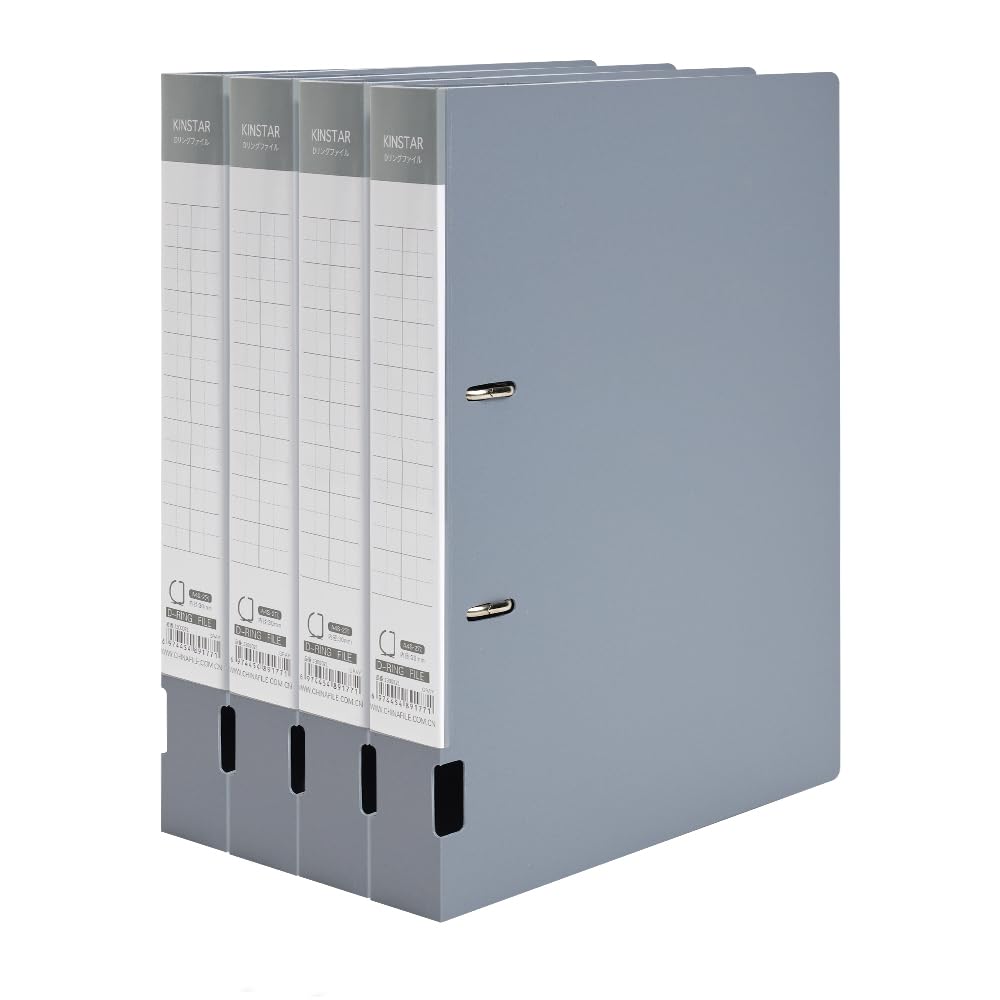 Kinstar リングファイル A4S 2穴 4册 縦 ファイル・アーチ式 250枚 収納 見開き Dリング A4 バインダー PP灰