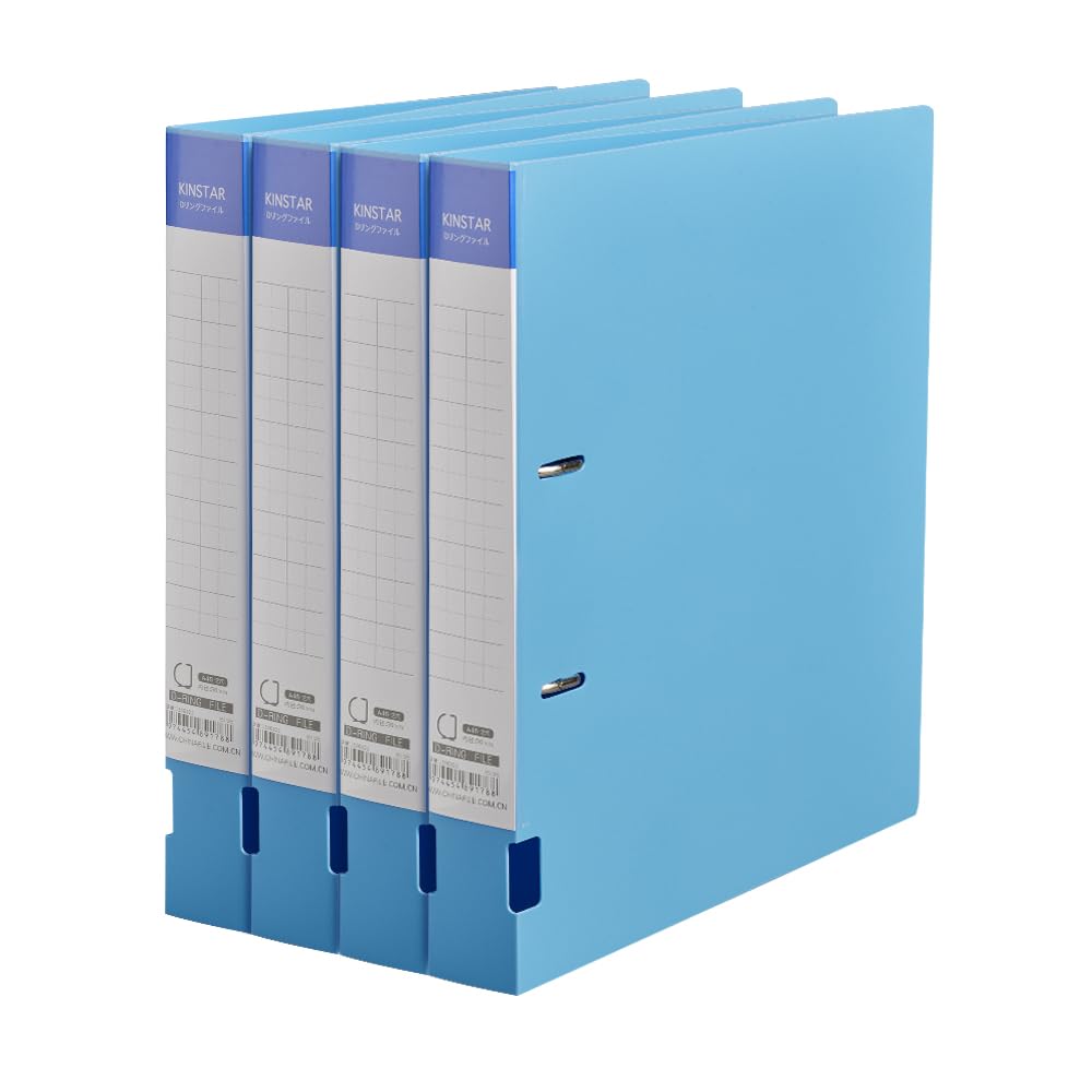 資料や掲示物などのファイルサイズの用紙を折らずに収納・保管する事ができ、水平に展開できるため、閲覧が快適です。背見出しは別売りのシールに対応しており、使用することでファイリングの分別がしやすくなるように考えられています。下部に空いたフィンガーホールは棚から取り出す際に指をかけやすくなっています。背面全体が使いやすさを考えた機能的なデザインです。