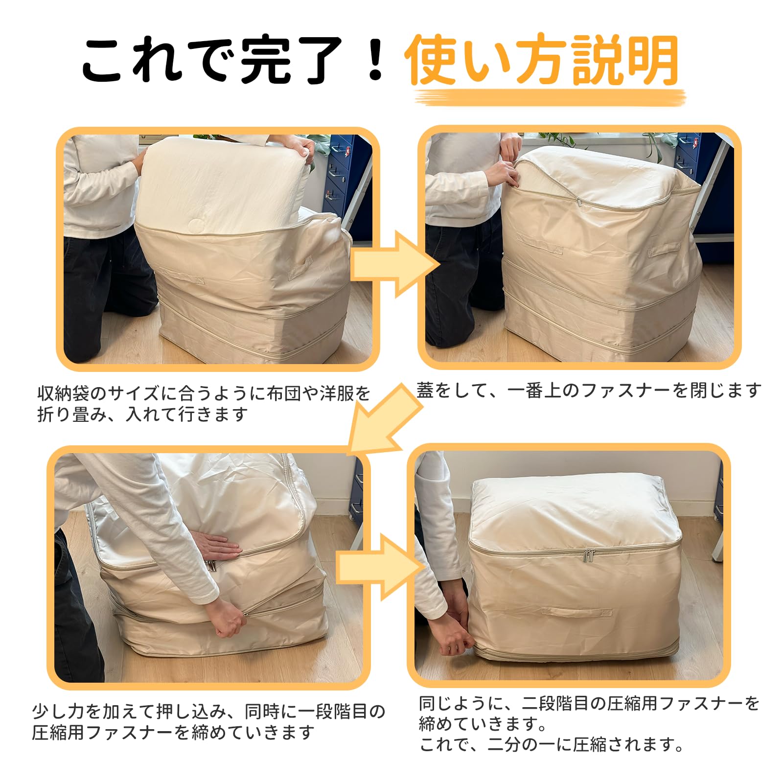 【圧縮袋掃除機不要】羽毛布団 収納袋 衣類収納ボックス 大容量 布団圧縮袋 掃除機不要 洋服収納ケース 衣類 収納ケース 衣装ケース 収納バッグ(MENGGA/タンス/クローゼット/押入れ/引越し/衣替え/ベッド下収納/ぬいぐるみ)