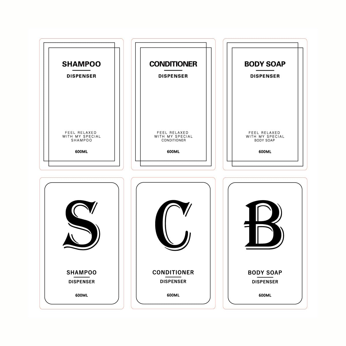 シャンプーボトル、コンディショナーボトル、ボディソープボトル用 ラベル 6枚
