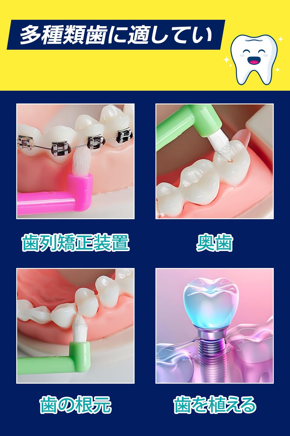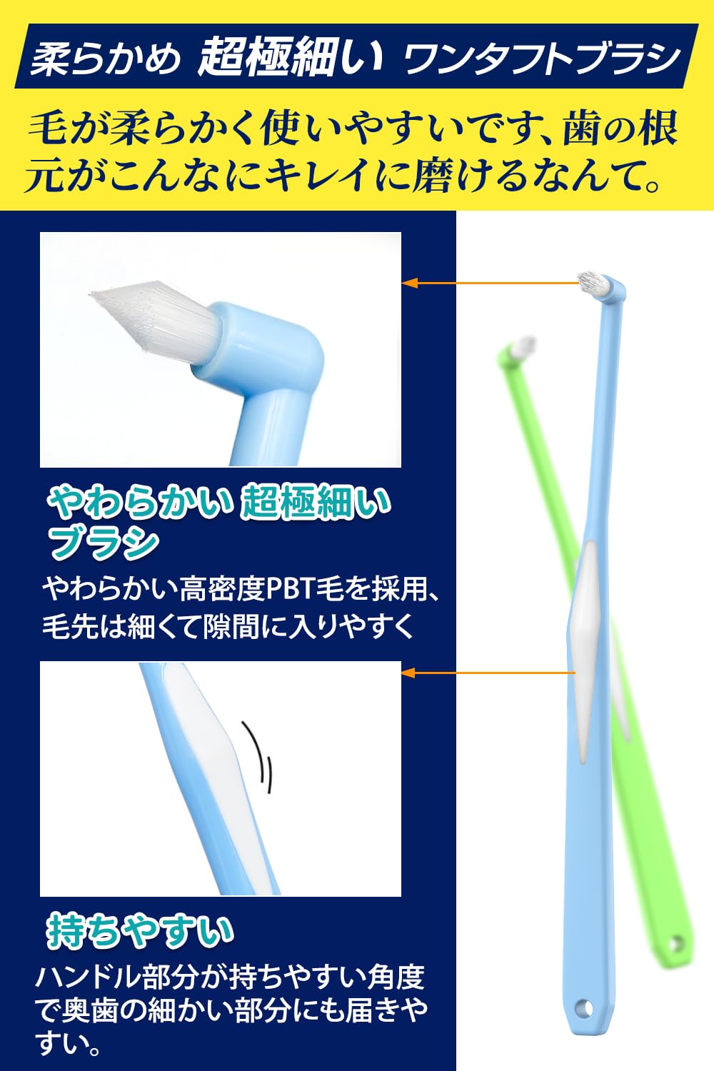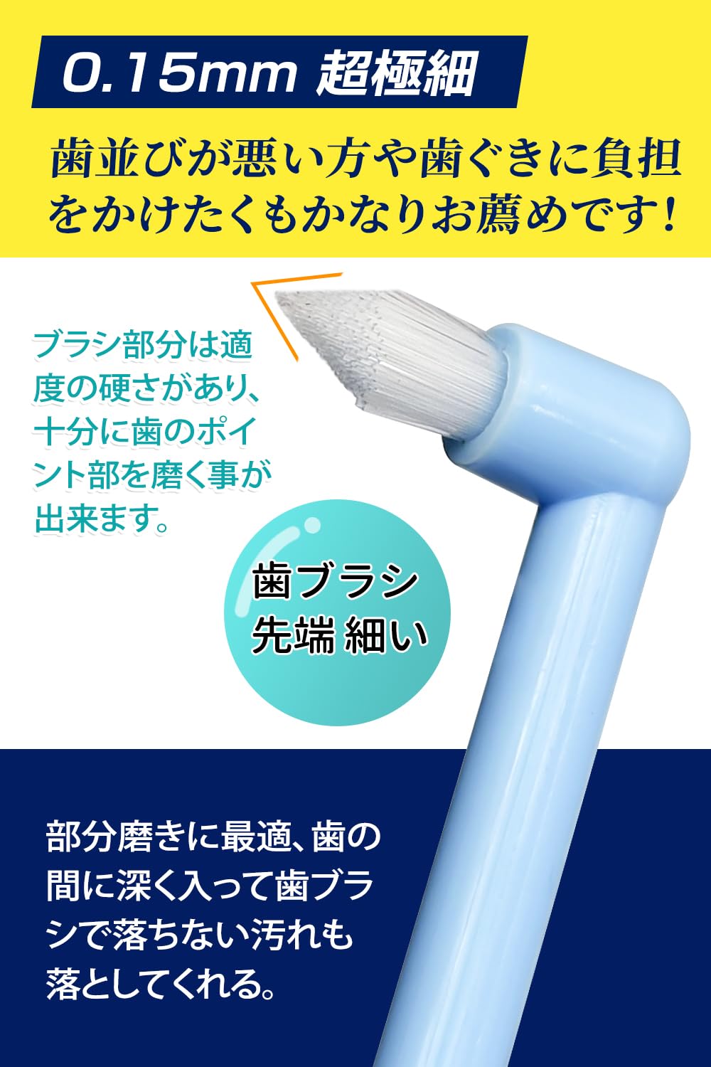 【柔らかめ 超極細い ワンタフトブラシ】やわらかい高密度PBT毛を採用、歯間の汚れはしっかり取り除け、変に力も入れず軽く磨くことができる。歯間部分ポイント歯ブラシ、矯正部分の清掃に優れています、奥歯までしっかり届きます。