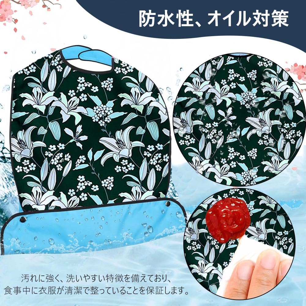 1.高品質のポリエステル生地を使用した、高齢者向けの食事用エプロン。防水性、オイル対策、汚れに強く、洗いやすい特徴を備えており、食事中に衣服が清潔で整っていることを保証します。