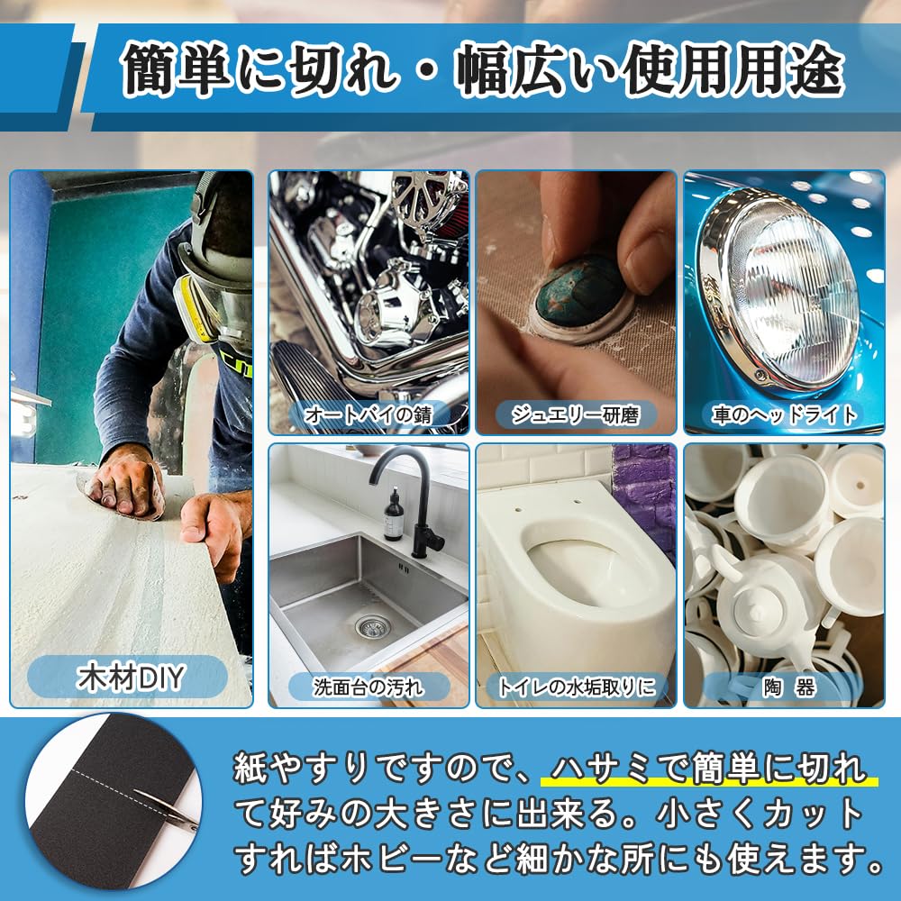 HWXINIE 紙ヤスリ 耐水ペーパー #2000番 紙やすり セット 細目 サンドペーパー 24枚入り ヤスリ 木工DIY作業 車 金属磨き キッチンやトイレの掃除 メーカー3年保証