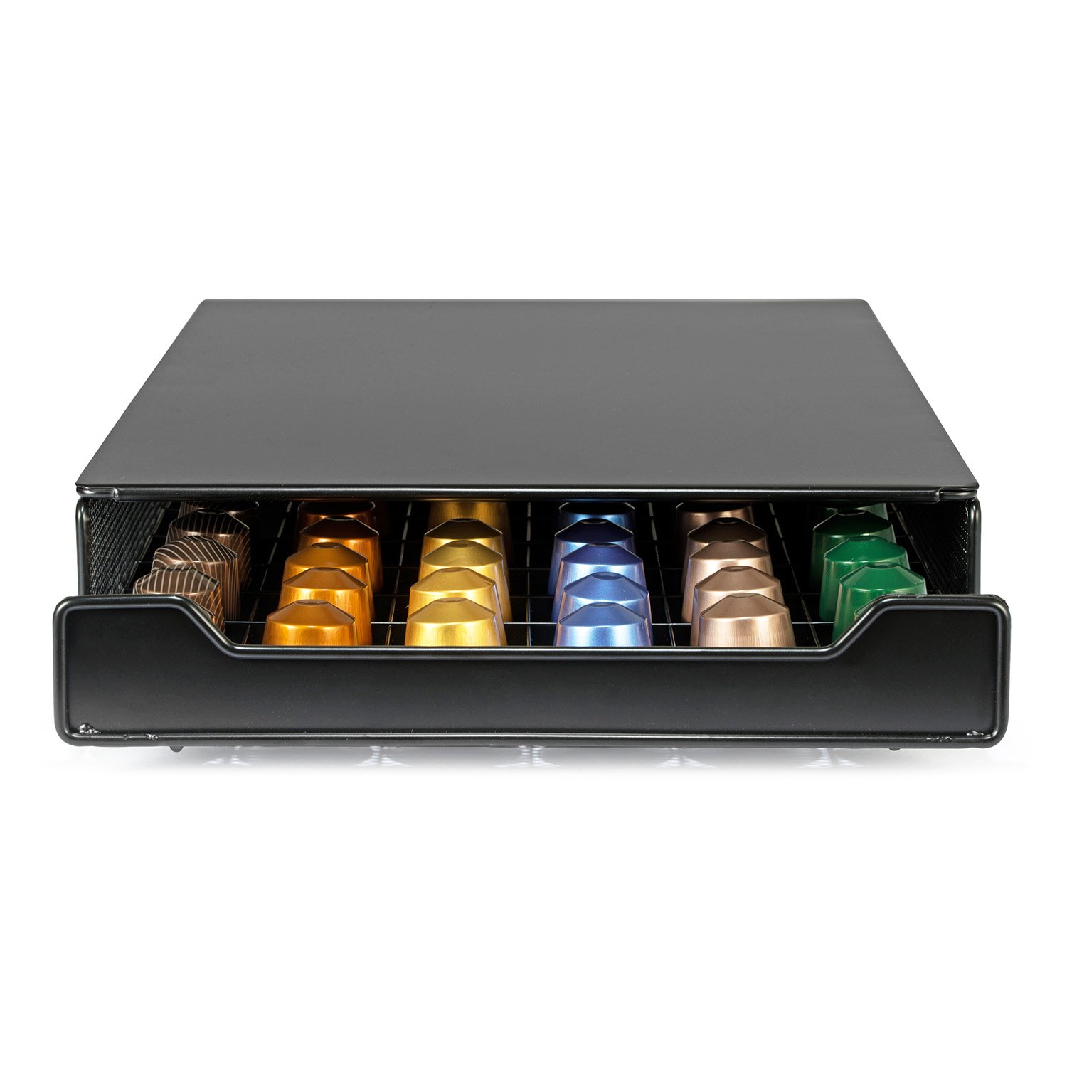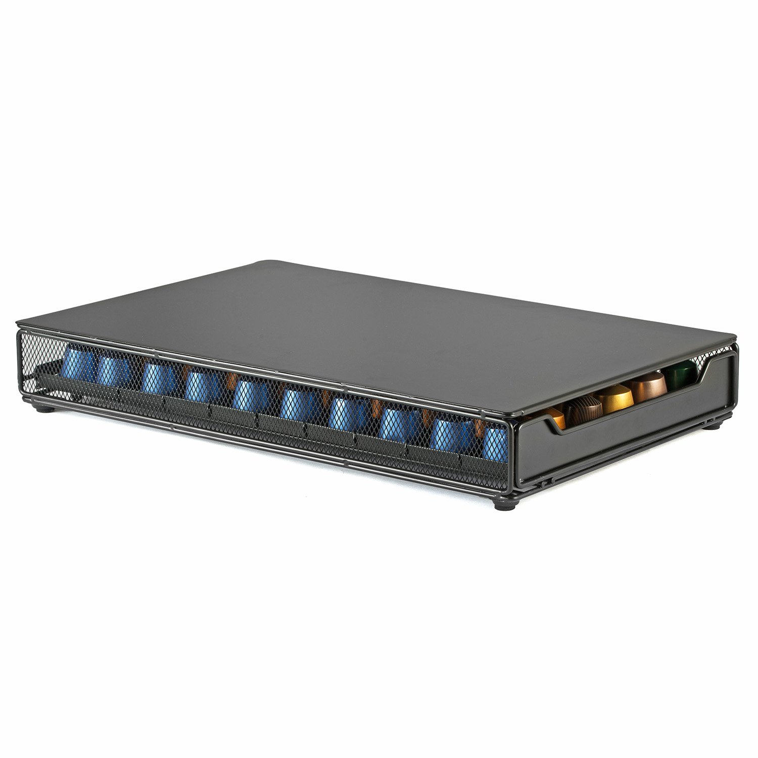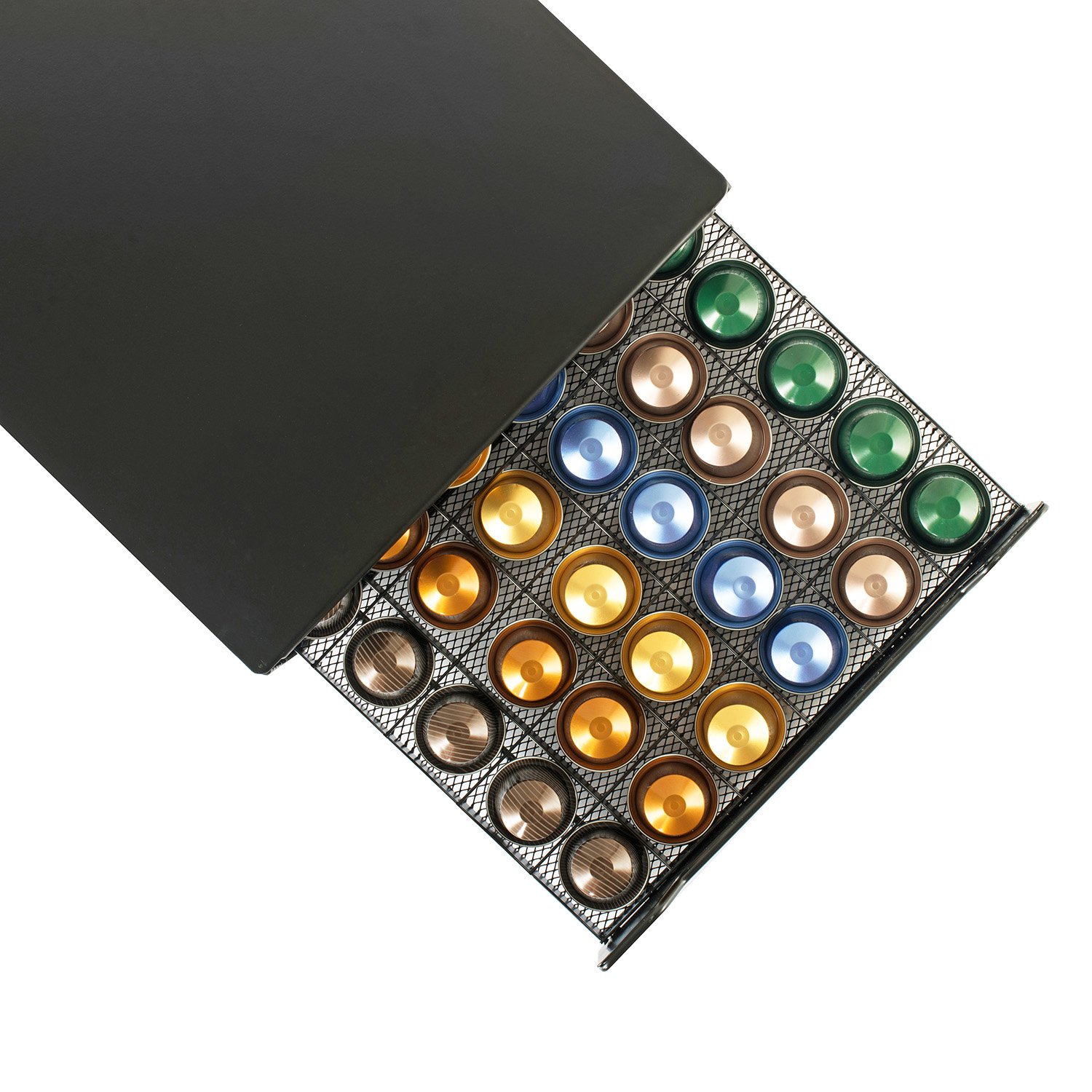 引き出しには最大60個のネスプレッソポッドを収納できます - アップグレード。各列の最後のグリッドは、2つのカプセルを収納できるように設計されています。 このようにして、最後のものを手に取ることができます。