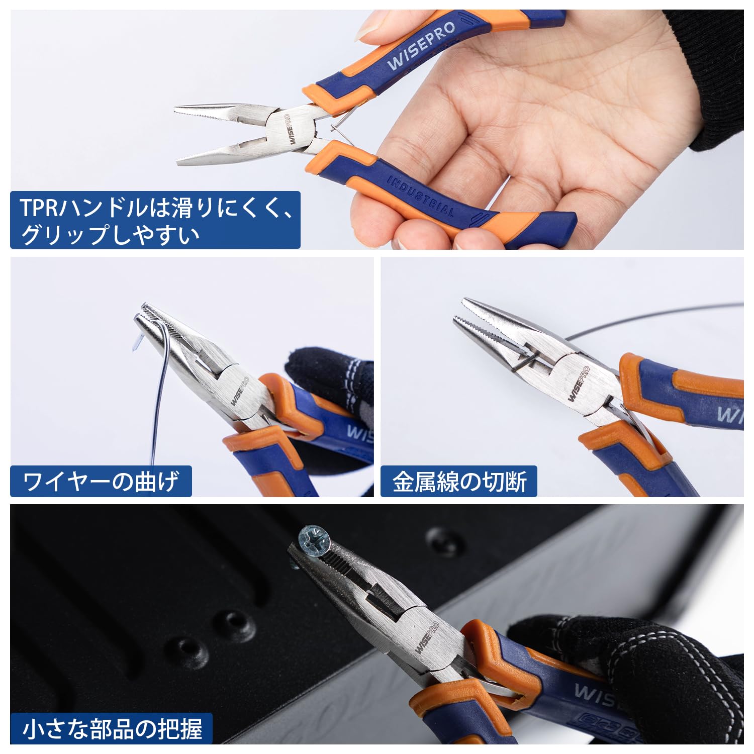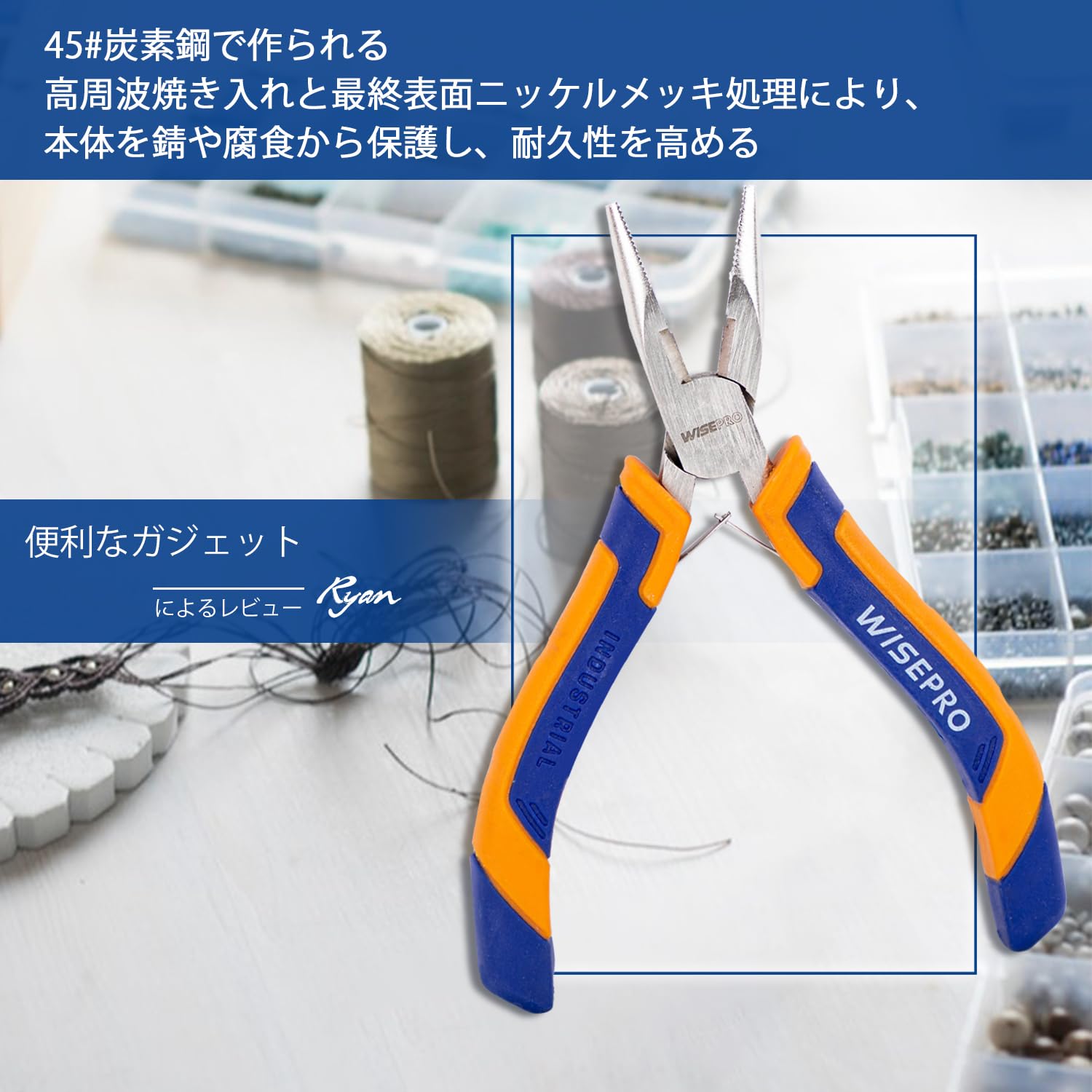 迷你广播钳有精致的细长头,可以插入狭窄的空间。 圆形尖端有助于使钢丝更加圆润曲线。 用于收纳小物件的夹具和钢丝弯曲。 根据硬的刀刃尖,可以帮助切断各种细金属线。 适用于制造串珠饰品、掌握零件、手工工艺品加工等。 尺寸:长115毫米、重量68克。 材质:迷你钳主体为45#碳钢制作而成。 高频烧和最后表面镀镍处理,精密钳子免受生锈和腐蚀,提高了耐久性。 高开衩设计,能够获得更大的切割能力。 采用省力概念设计,在钳子使用时稍微用力即可实现强力的夹具力。 附带板弹簧:每个迷你钳配备了2个板弹簧,打开钳子可以直接操作。 省力,即使在狭窄的地方也能轻松工作。 轻量手柄:迷你钳子非常轻巧,便于携带和操作,手柄采用柔软的TPR/PP材料,贴合手部,手柄不易打滑,容易抓握。