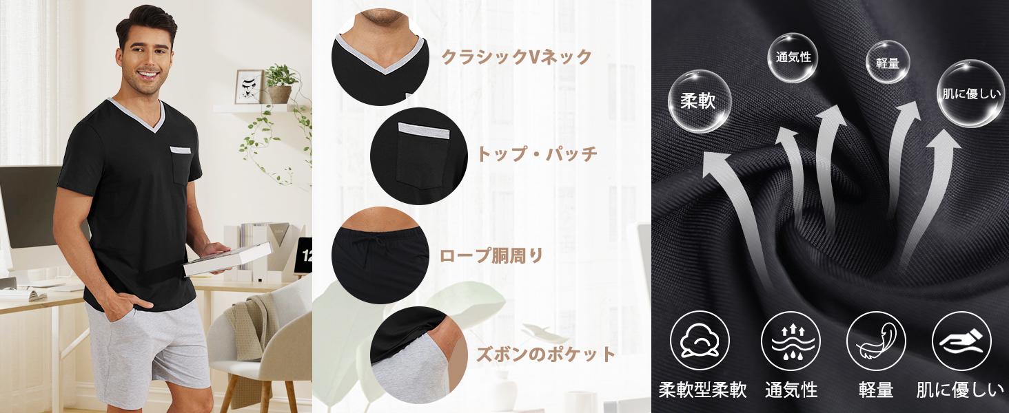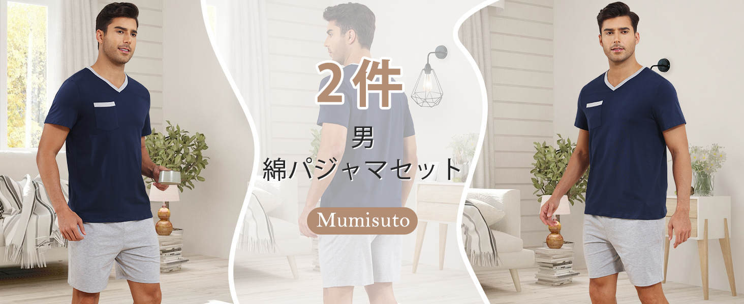 [mumisuto] パジャマ メンズ 半袖Vネック半袖ショートパンツパジャマセット部屋着 半ズボン ナイトウェア 春夏 上下セット吸汗速乾