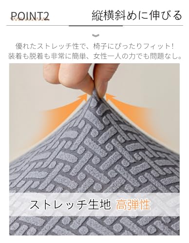 ほとんどの椅子のサイズに合うように伸縮性が良い素材を採用しました。フィット性も手触り感もよく、シワになりにくく、高品質の縫製、丈夫、耐磨耗性が高い。