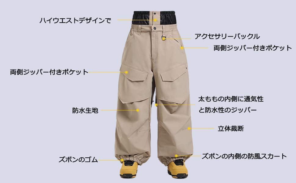 [koobla] スノーボードパンツ スキーウェア 大きいサイズ 防水パンツ oversized ワイドパンツ HIP POP 耐水20,000mm メンズ 雪遊び アウトドア kb280