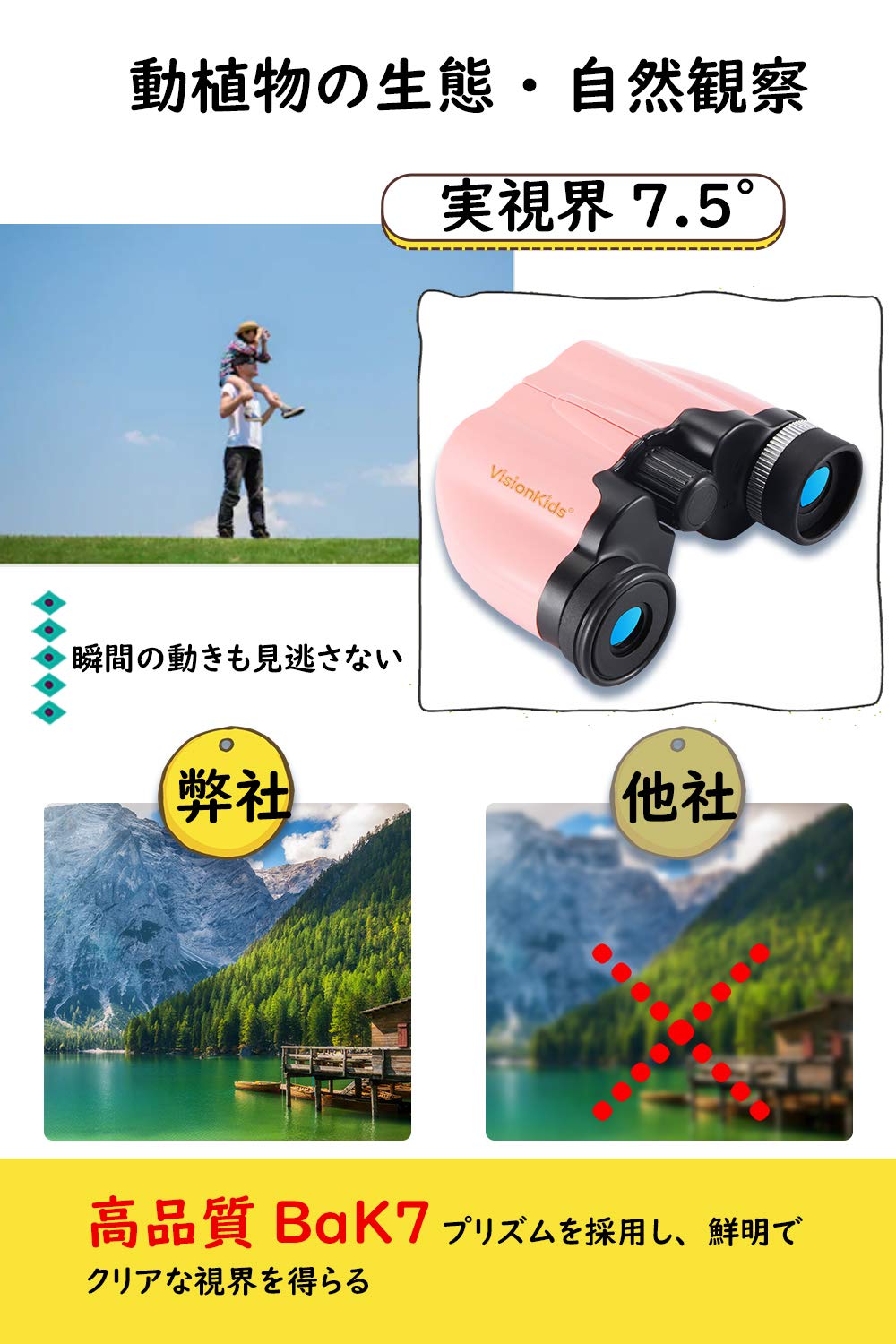視野が広く、焦点がブレにくい