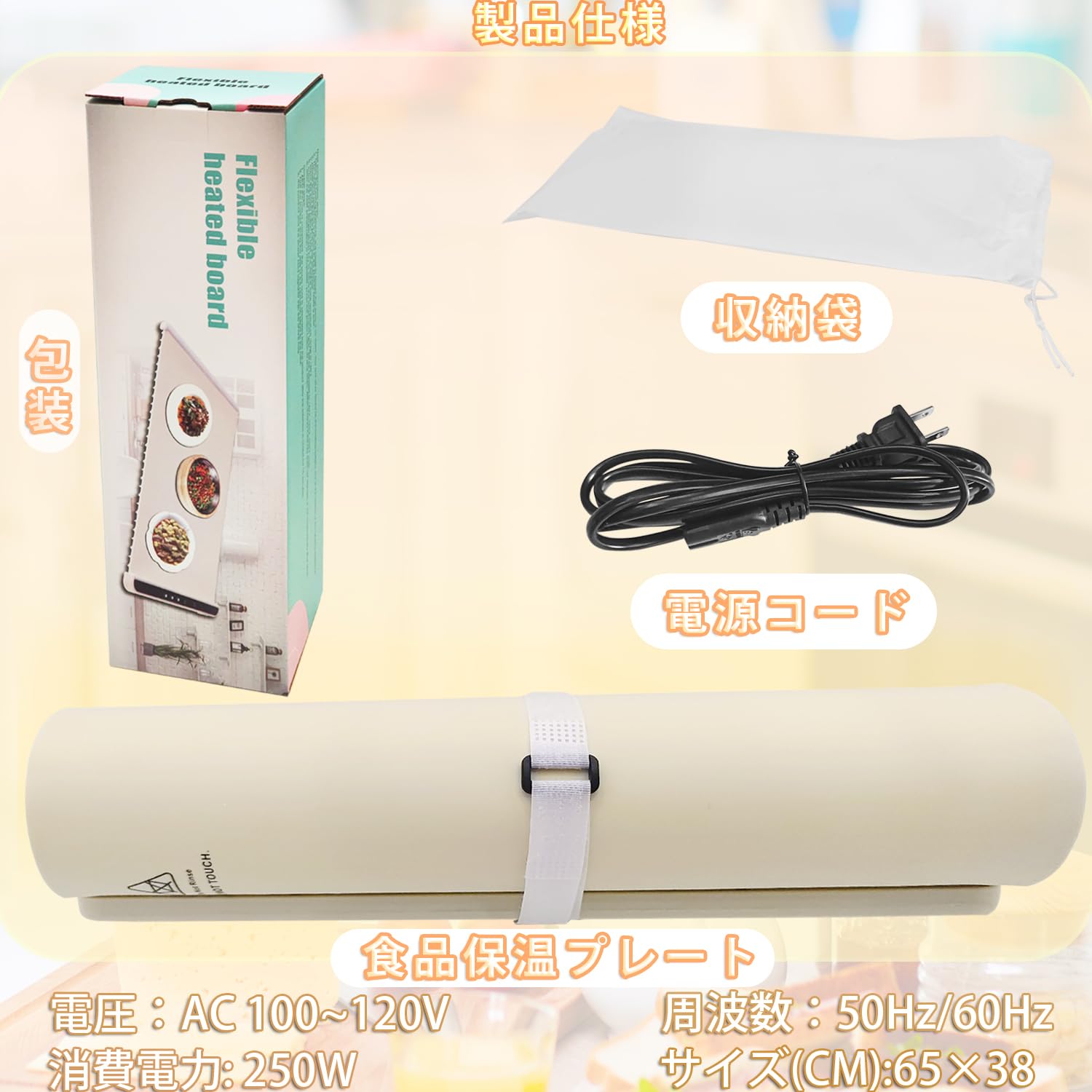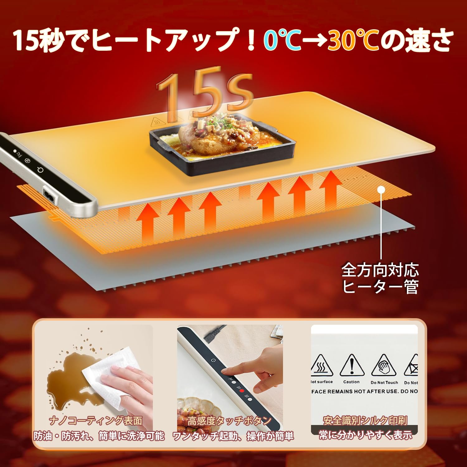 食品保温プレート 電気保温トレイ, 多機能食品断熱ボード フードウォーマー ホットプレート お手入れも簡単/温度調節可/折りたたみ式
