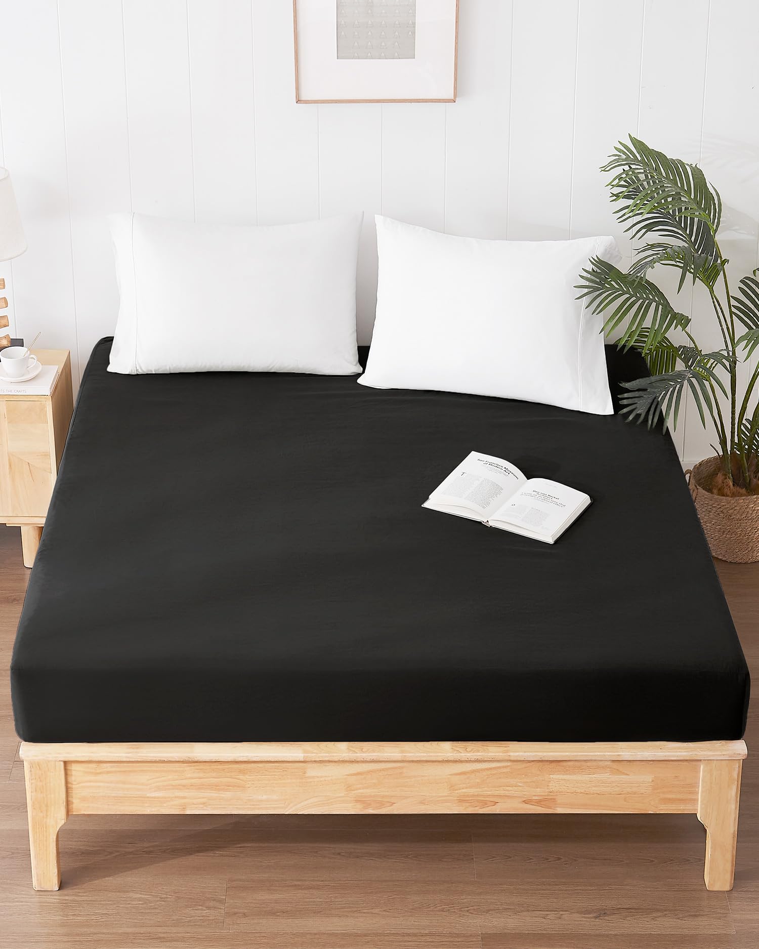 ボックスシーツ シングル 吸水速乾 着脱簡単 柔らかい肌触り マットレスカバー 無地 ずれない 洗える 抗菌防臭 防ダニ 5~30cm厚のマットレス用 (ブラック, ダブル 140*200*30cm)