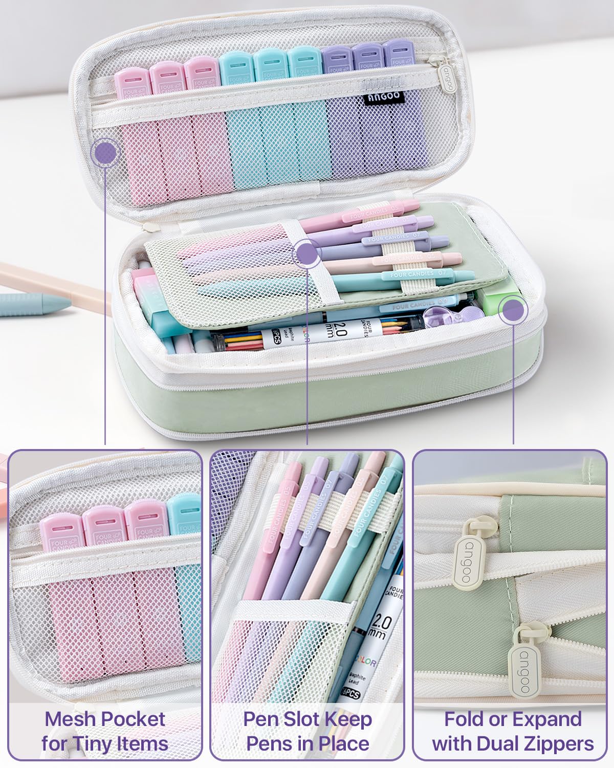 Four Candies 文房具 56点セット 4色ボールペン シャーペン(0.5、0.7、0.9&2.0mm)蛍光 ジェルボールペン ペンケース 詰め替え芯 文具 筆記用具 学用品 文具 入学準備 入学お祝い 女の子 男の子 人気 おしゃれ かわいい プレゼント 学生-グリーン