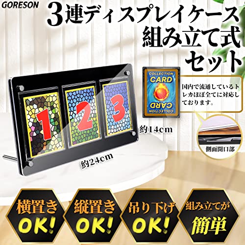Goreson 3連ブラックディスプレイケース スクリューダウン カードスタンド カードローダー カードスタンド カードホルダー uvカット 台座付き ブラック ディスプレイスタンド
