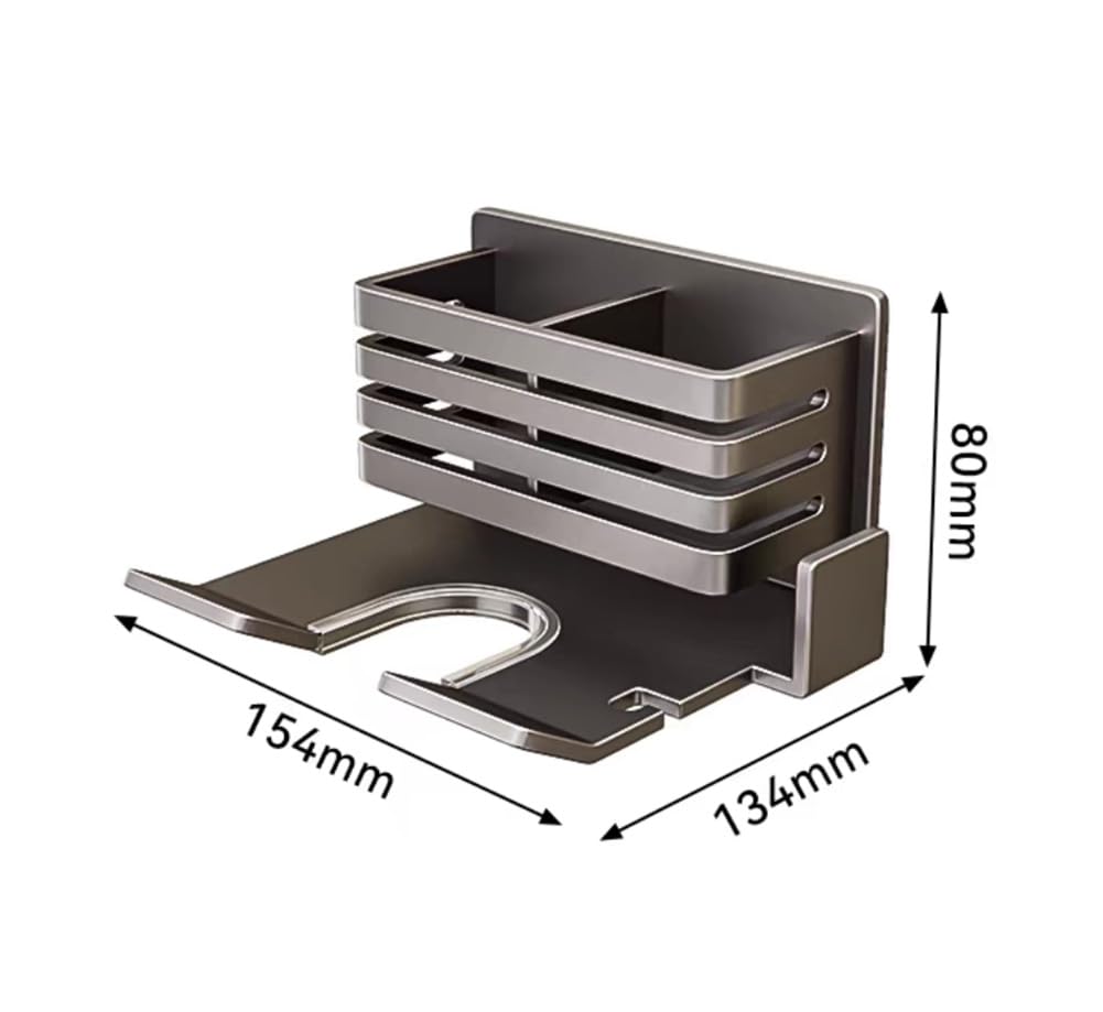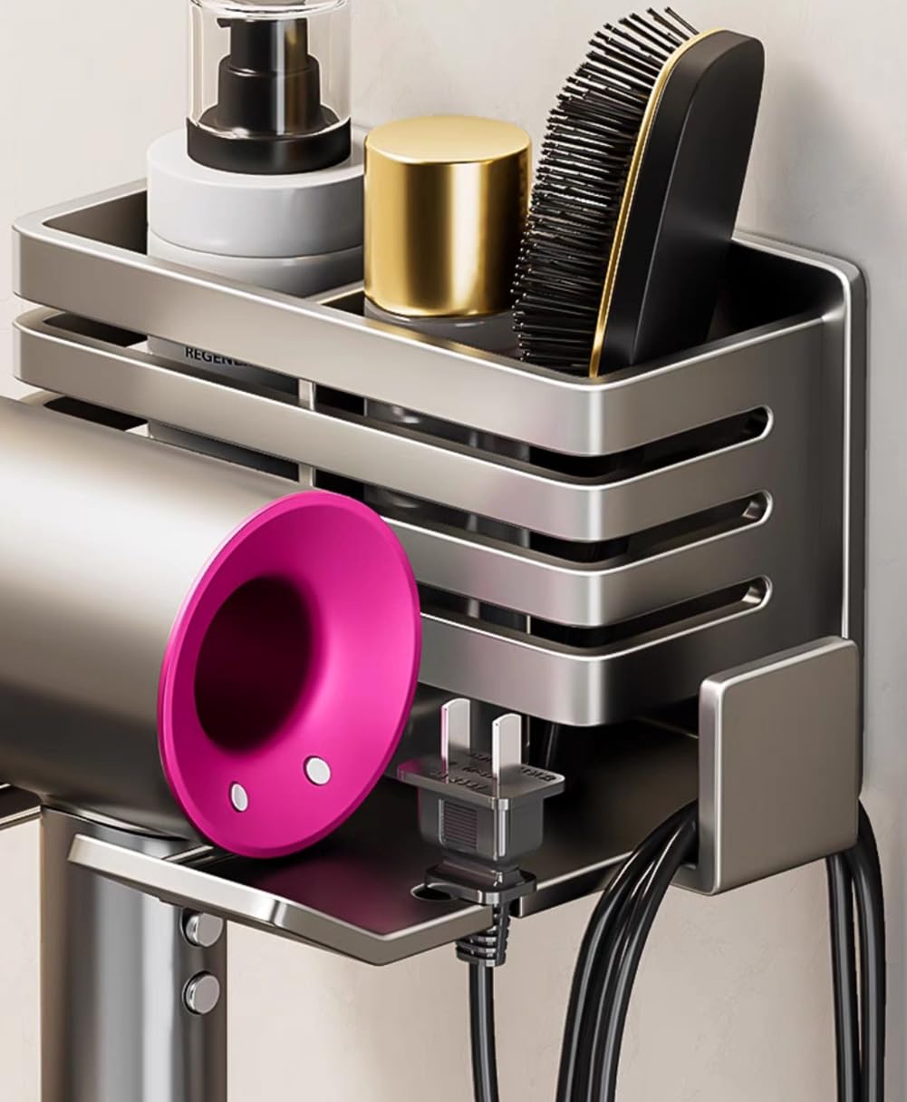 ヘアドライヤーホルダー、全てのヘアドライヤーに対応する壁掛けラック、バスルーム/ベッドルーム/洗面所/理髪店用スペースオーガナイザー、304ステンレススチール、シルバー